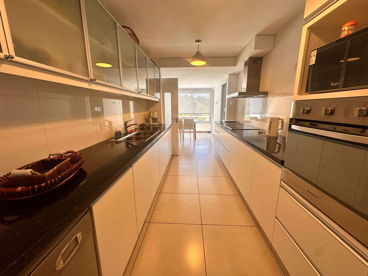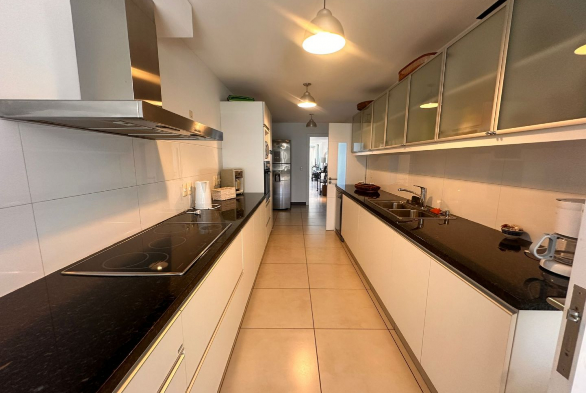 Cocina amplia y completamente equipada con heladera con freezer, microondas, horno, lavavajillas, cafetera, jarra eléctrica y vajilla completa.