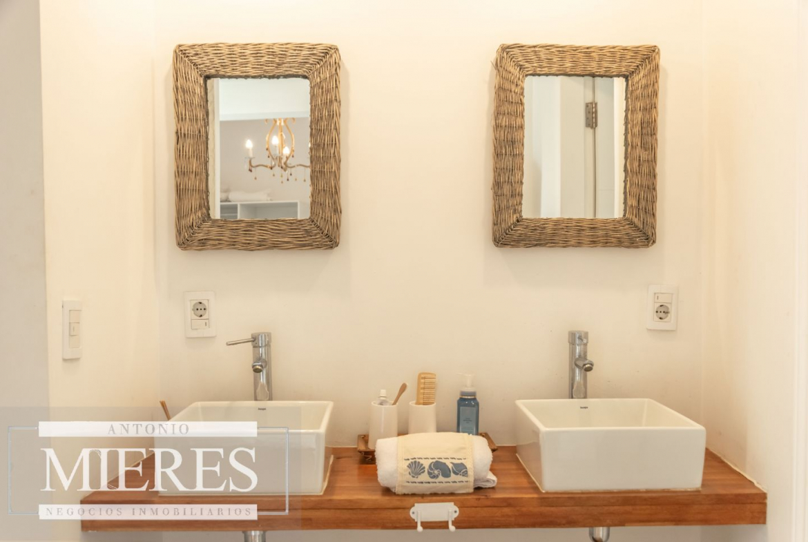 La propiedad ofrece dos dormitorios principales con cama doble y baño en suite, además de dos dormitorios con camas individuales que comparten un baño. También cuenta con un dormitorio exterior con cuchetas, ideal para huéspedes o personal de servicio.