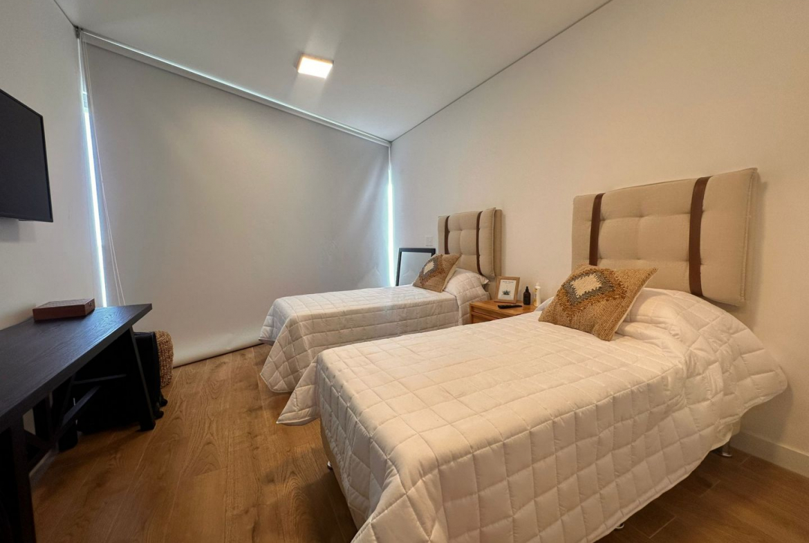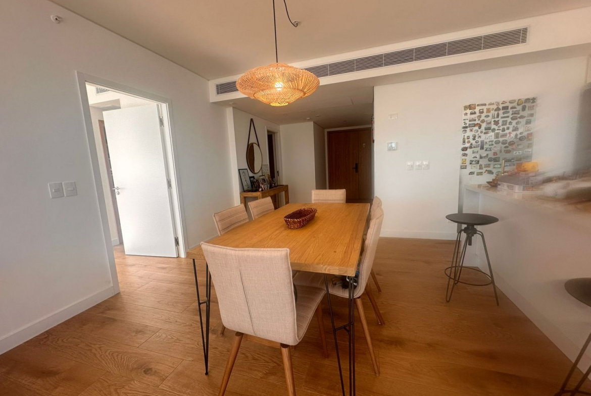 Amplio living comedor , muy luminoso, gran pared vidriada al exterior y terraza con vista al mar . Se destaca el dormitorio principal por sus dimensiones, gran vista al bosque, vestidor y baño en suite. Más otro dormitorio en suite.  Cocina integrada,  sector de Laundry y toilette. El mismo cuenta con aire acondicionado frío/calor sectorizado, losa radiante, agua caliente central y sensores de luz en pasillos. Finas terminaciones y hermosas vistas que ofrecen una experiencia única para disfrutar de manera permanente o por temporadas.