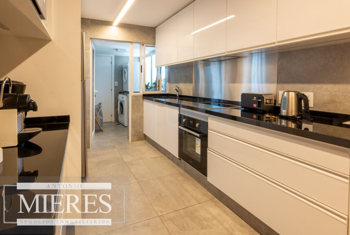 El departamento fue renovado a nivel integral y se destaca por su sistema de iluminación moderno e inteligente, con paneles táctiles en cada ambiente para regular luces y escenas de forma suave y delicada. Las persianas eléctricas y la luminaria de diseño brindan una estética contemporánea y sofisticada.