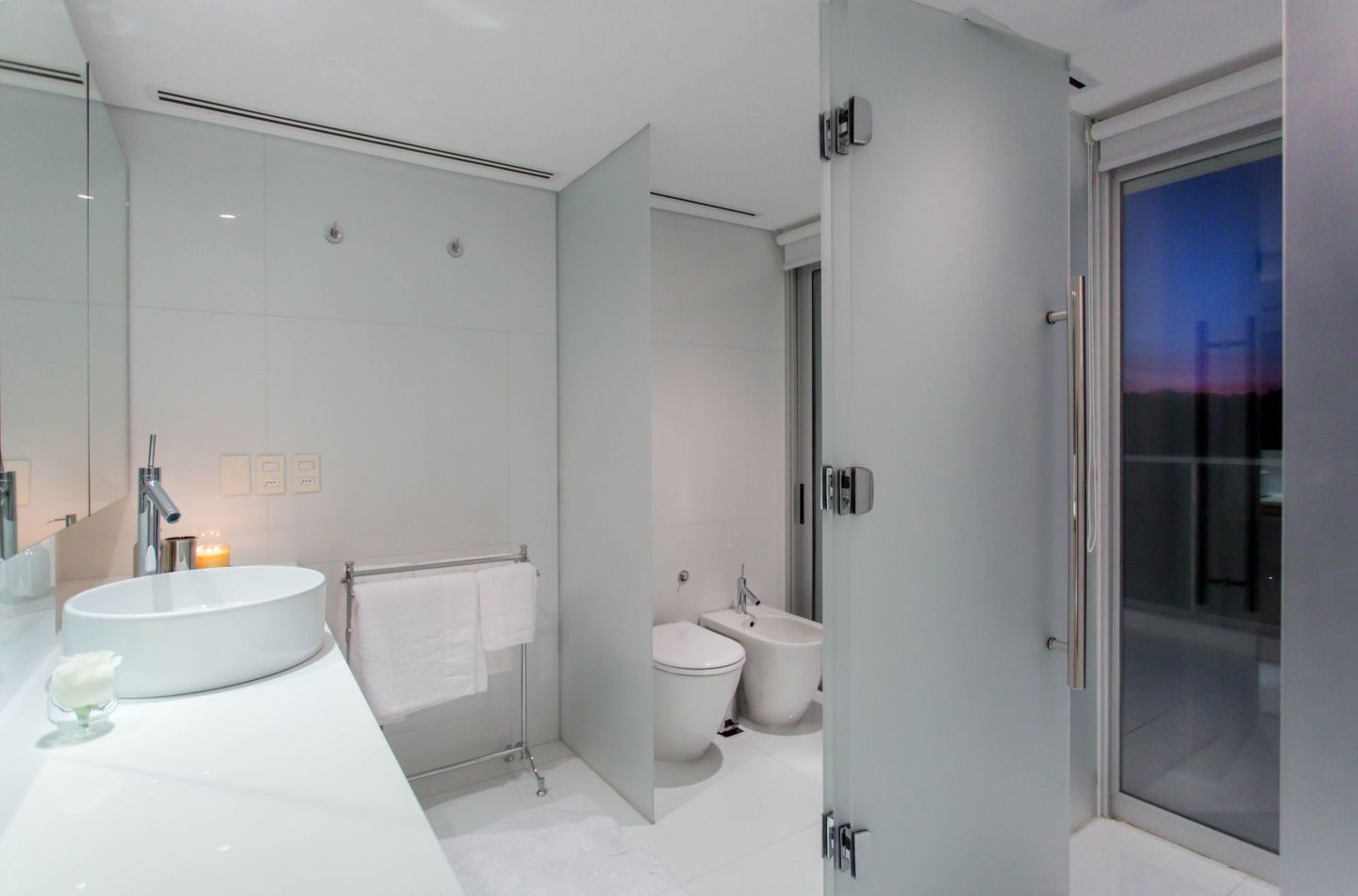 Importante residencia frente al mar en playa brava. Penthouse de lujo en el exclusivo edificio Mythos, con unos 280m2 de planta y mas de 450m2 de terrazas semi cubiertas, con la mas increíble vista 360º. La planta se desarrolla en el séptimo piso, con amplios interiores finamente equipados. Incluye un importante living y comedor integrado, con grandes ventanales al mar para el disfrute todo el año. Suite principal con acceso directo a la terraza, cuenta con 2 vestidores y 2 baños completos. La propiedad cuenta ademas con otras 3 suites de amplias dimensiones, todas con acceso a la terraza. ´