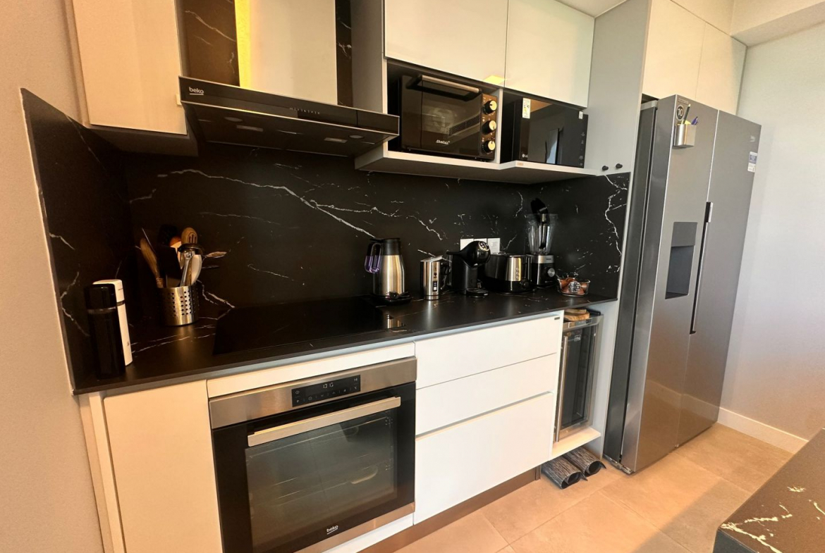 La cocina es moderna y completamente equipada, con isla central y una amplia variedad de electrodomésticos: lavavajillas, heladera de dos puertas, heladera para vinos, horno eléctrico, anafe, campana extractora, microondas y horno eléctrico adicional. Todo en perfecto estado y listo para disfrutar.