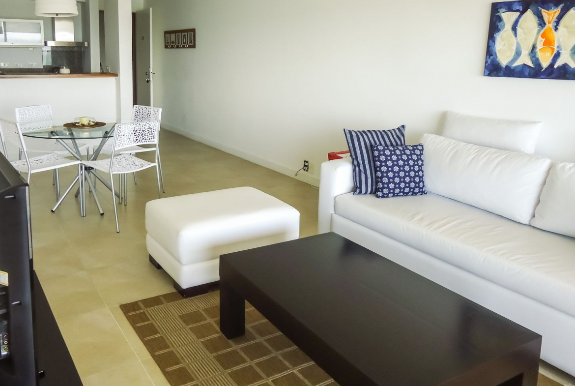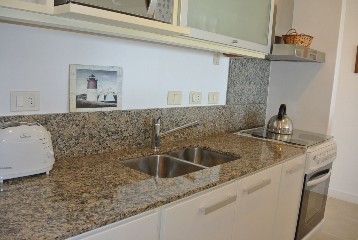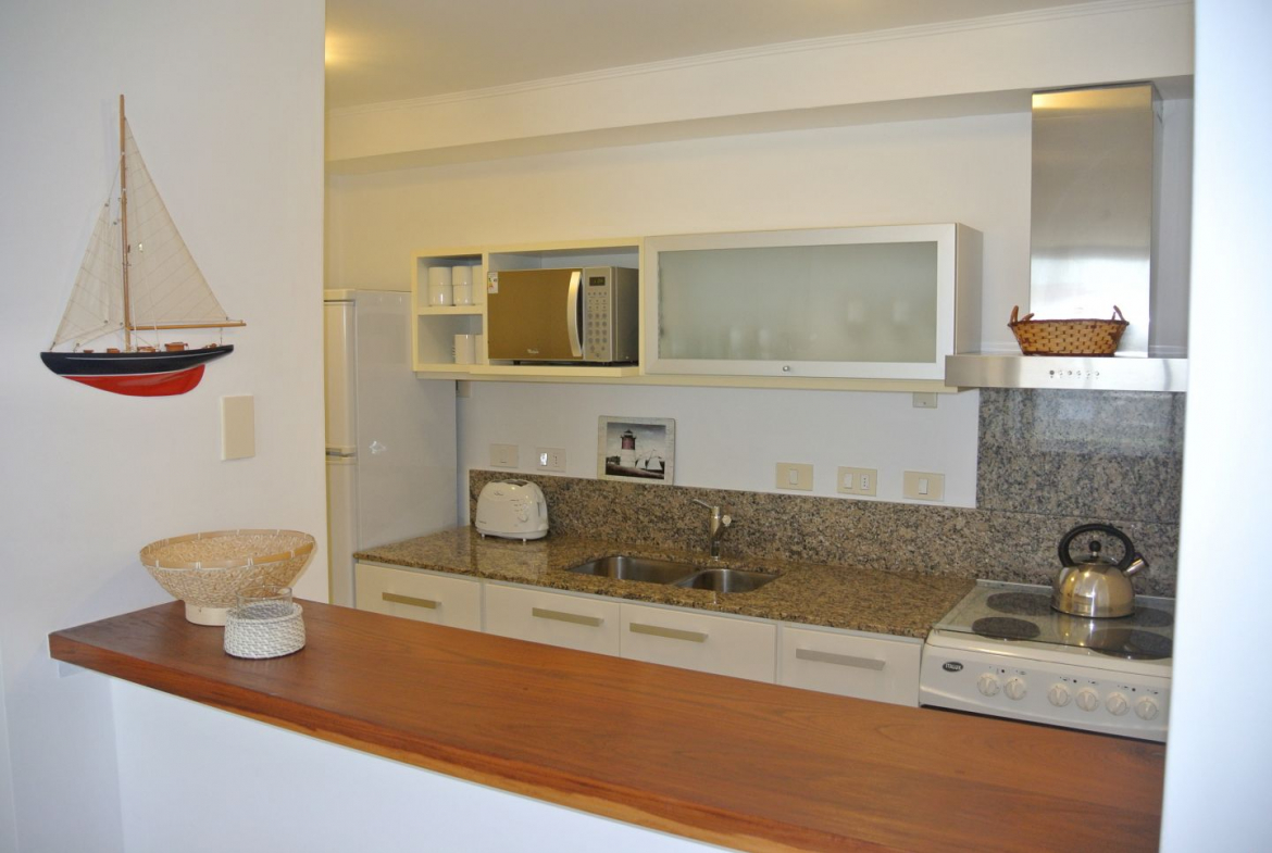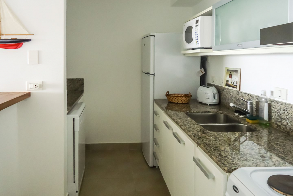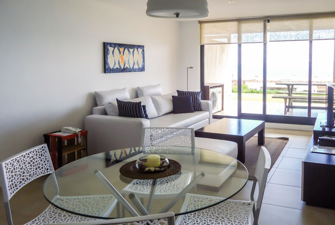 Quartier Punta Ballena. Apartamento de 1 dormitorio con excelente vista al mar. Living comedor, cocina, terraza y jardin con parrilla. de 1 dormitorio, 1 baño.