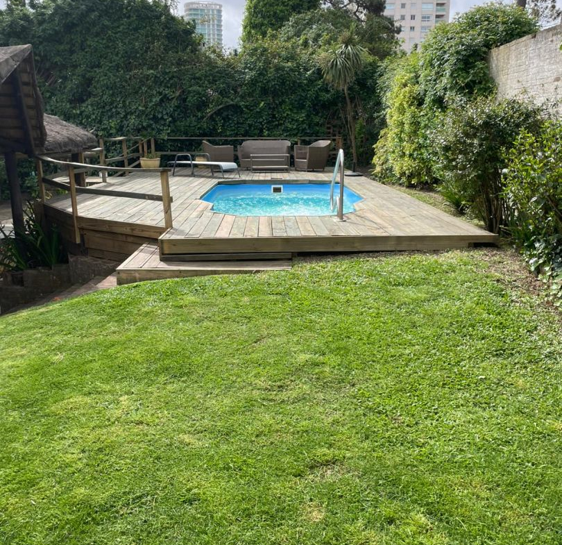 – Piscina climatizada rodeada de un lindo deck de madera.