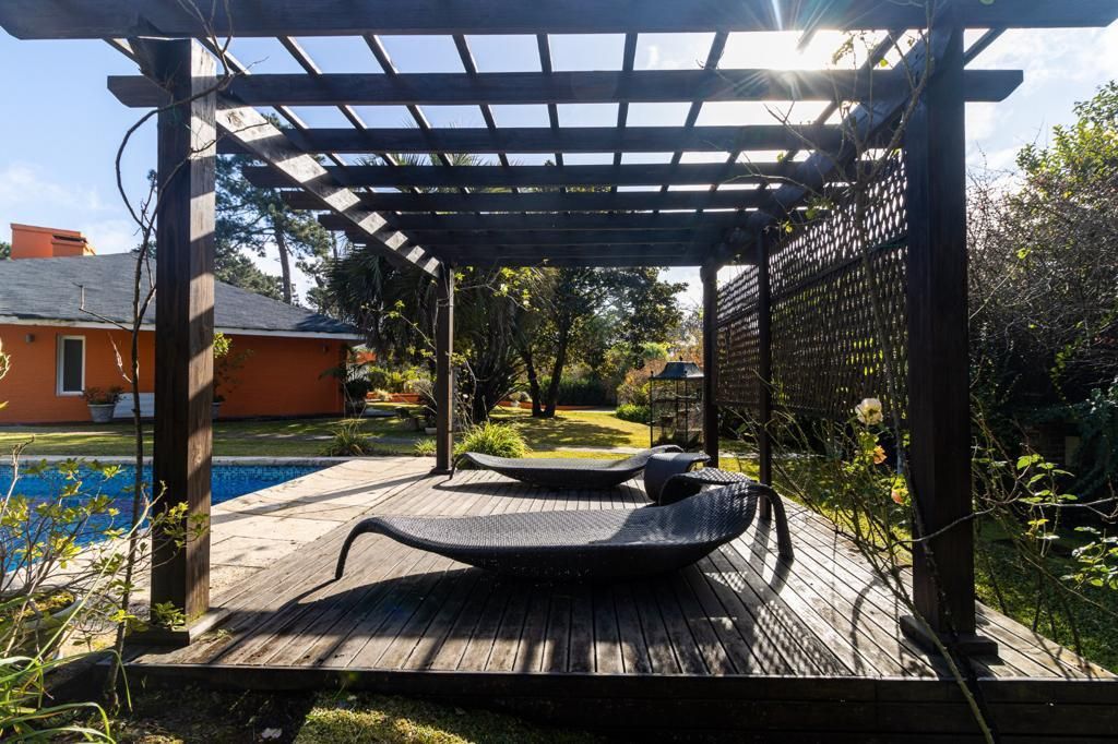 En el exterior, un jardín con piscina invita a relajarse al sol. Además, tiene un deck de madera con sillones, perfecto para disfrutar de las tardes de verano.