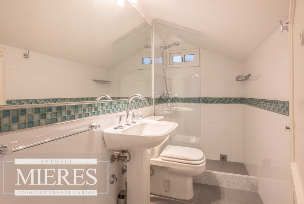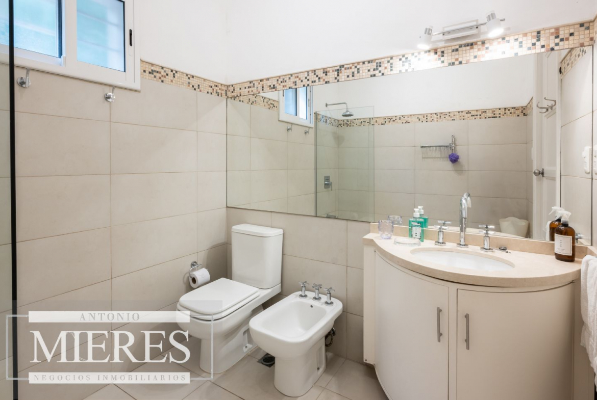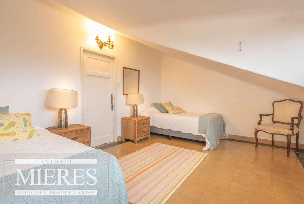 En planta baja se encuentran cuatro dormitorios (dos chicos y dos al fondo), dos baños completos con bañera, un toilette y persianas en todos los dormitorios. En planta alta hay dos dormitorios adicionales con camas que pueden unirse, y dos baños completos con ducha.