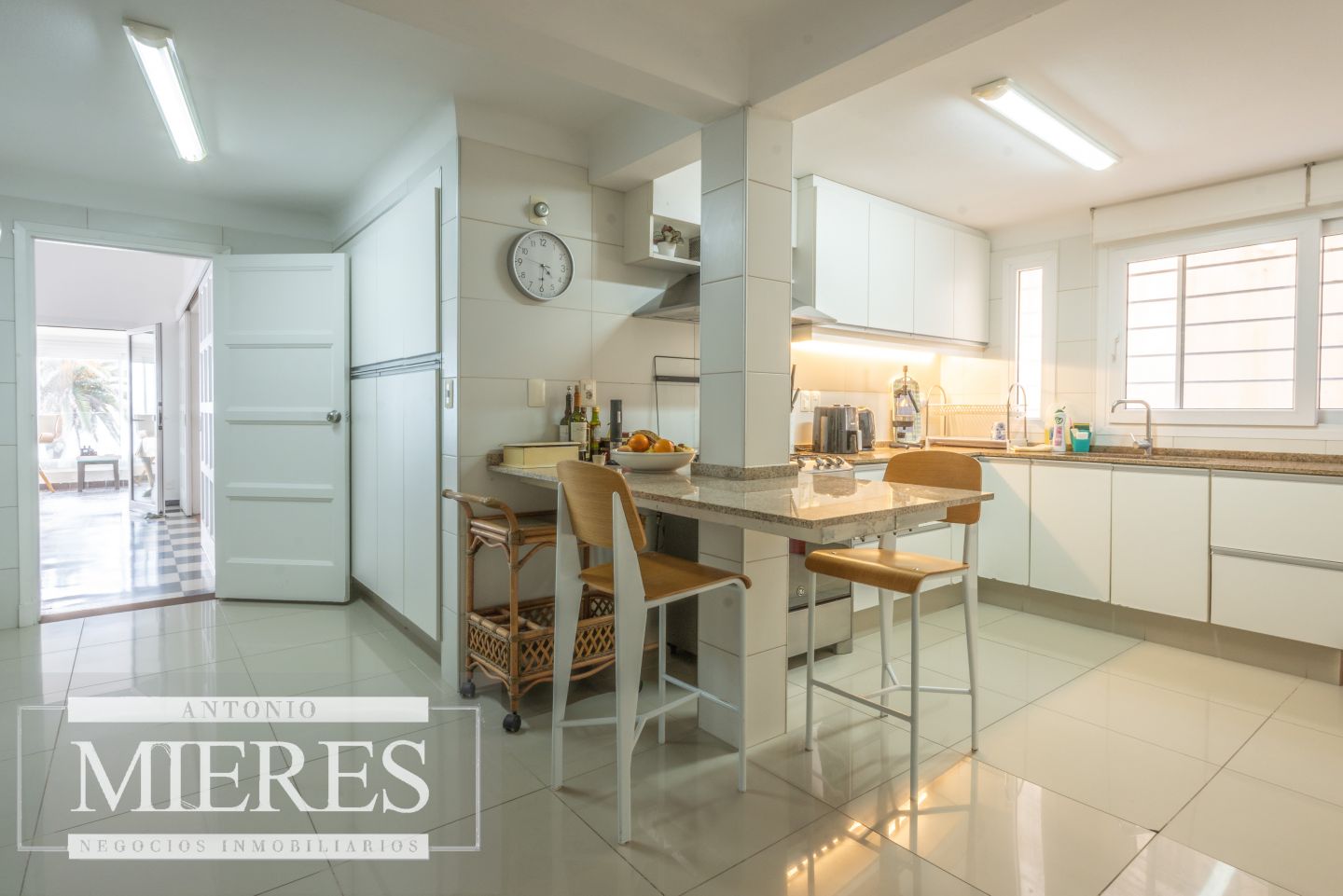 La zona social incluye un comedor para 12 personas y una cocina totalmente equipada con dos heladeras, cocina a gas y eléctrica, lavavajillas, freezer adicional y lavadero con dos lavarropas y secarropas.