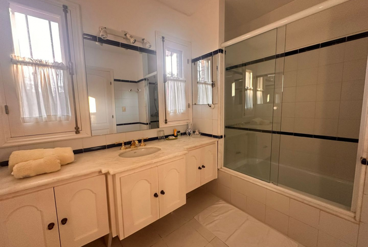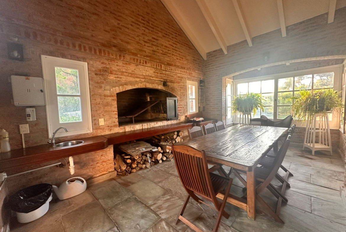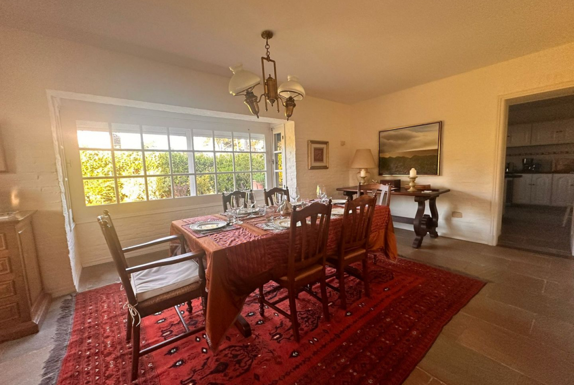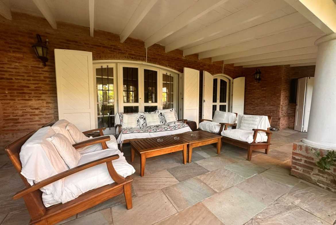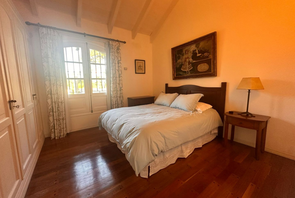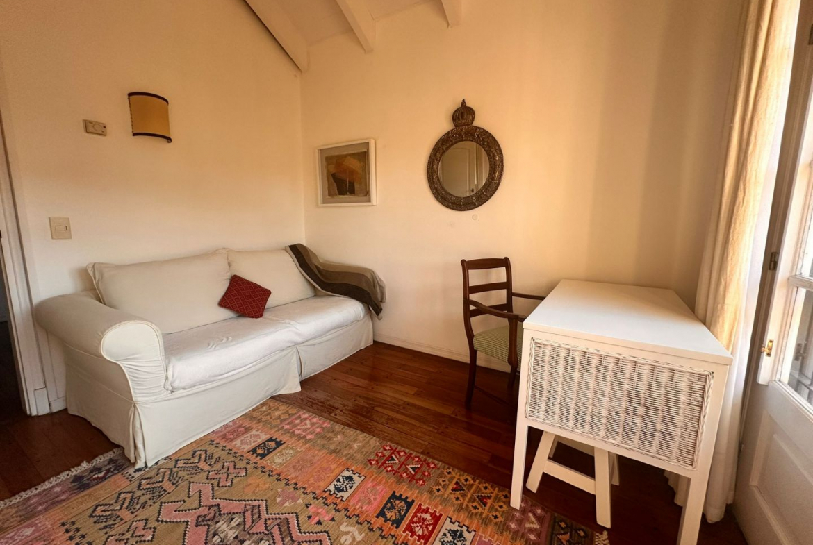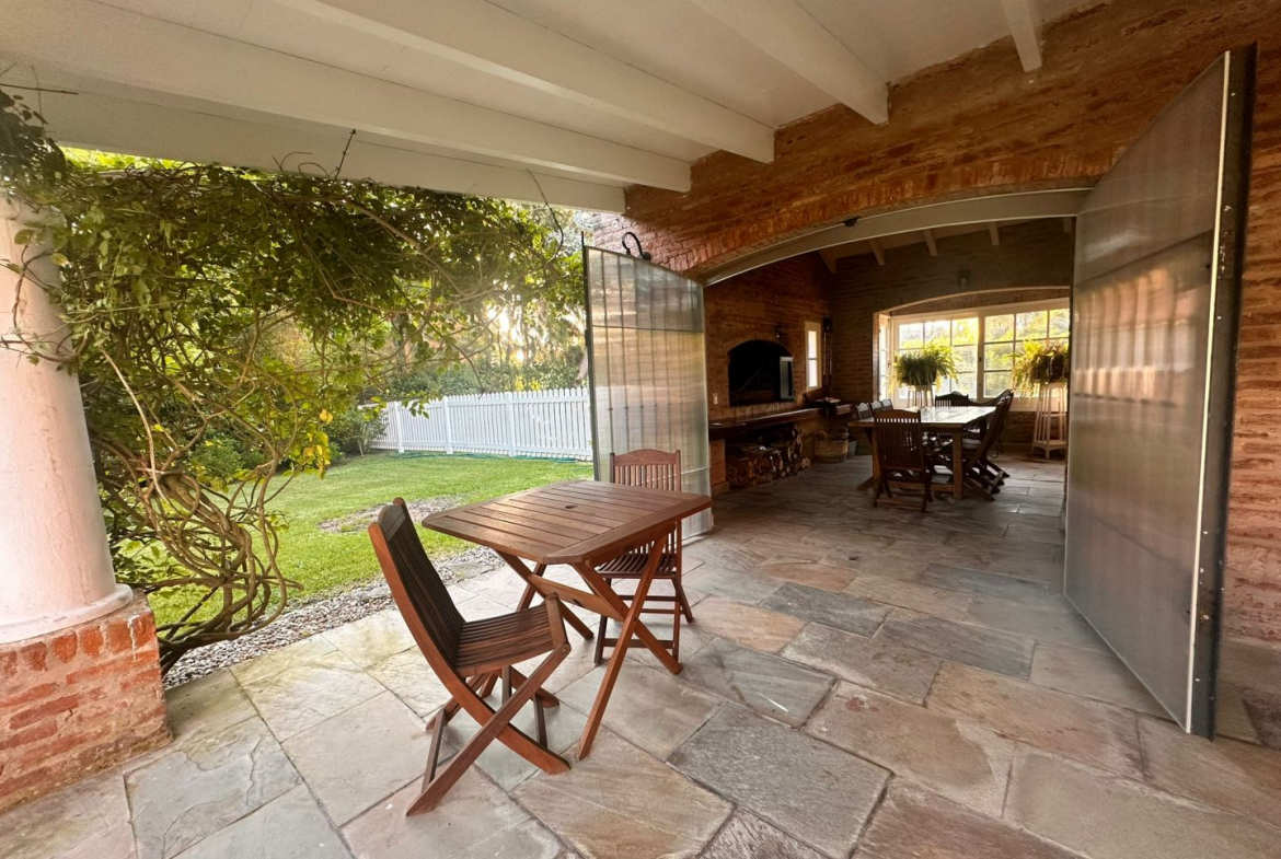 Hermosa galería con vista al jardín y su entorno, mas parrillero cerrado. Ropa blanca, servicio de alarma, jardinero y limpiadora por horas incluido.