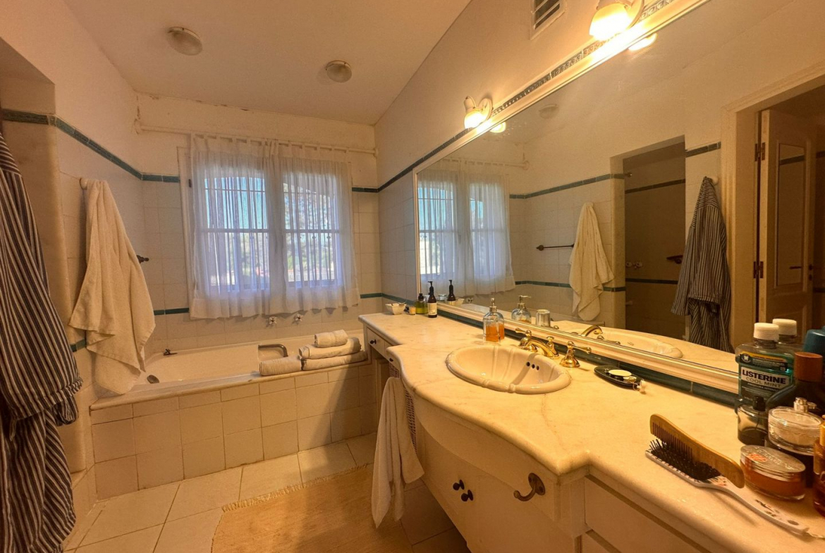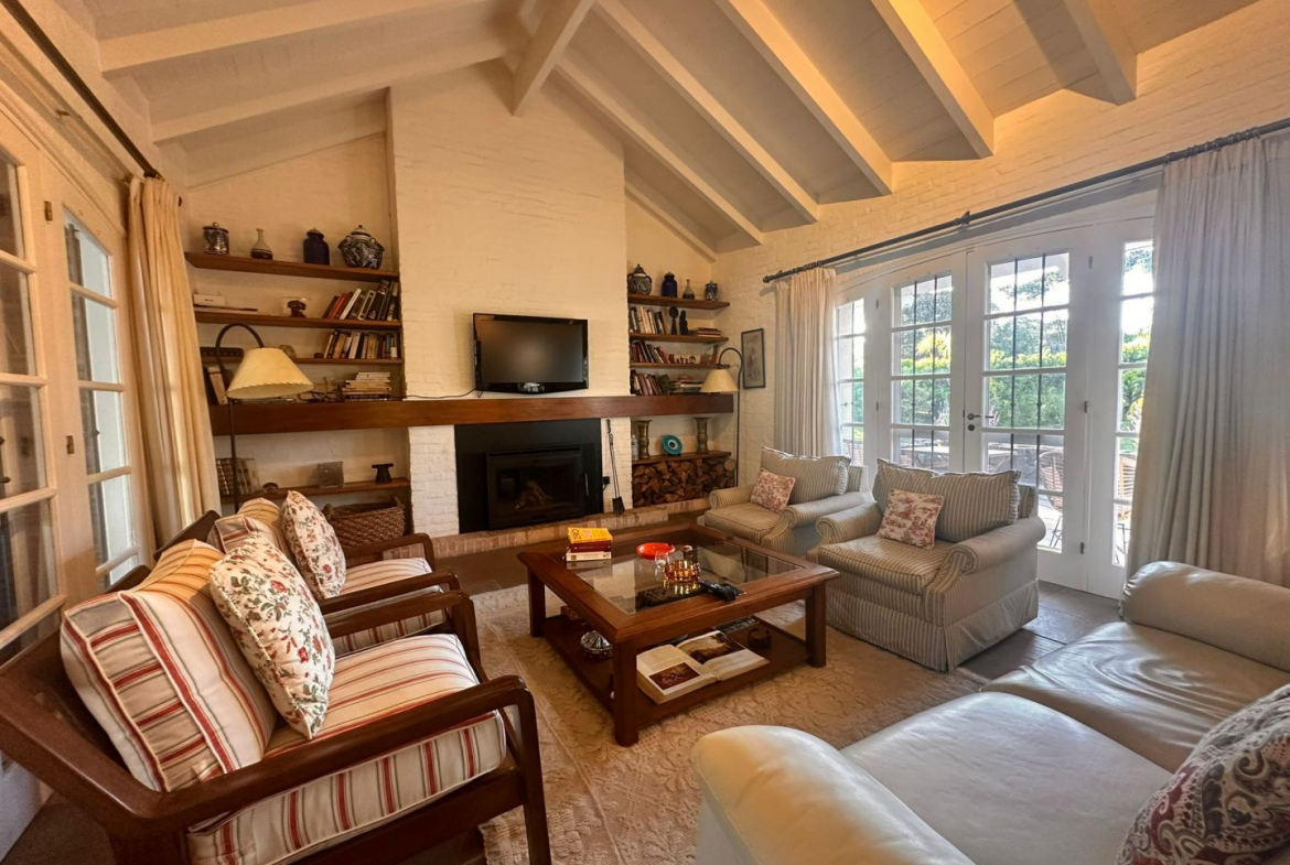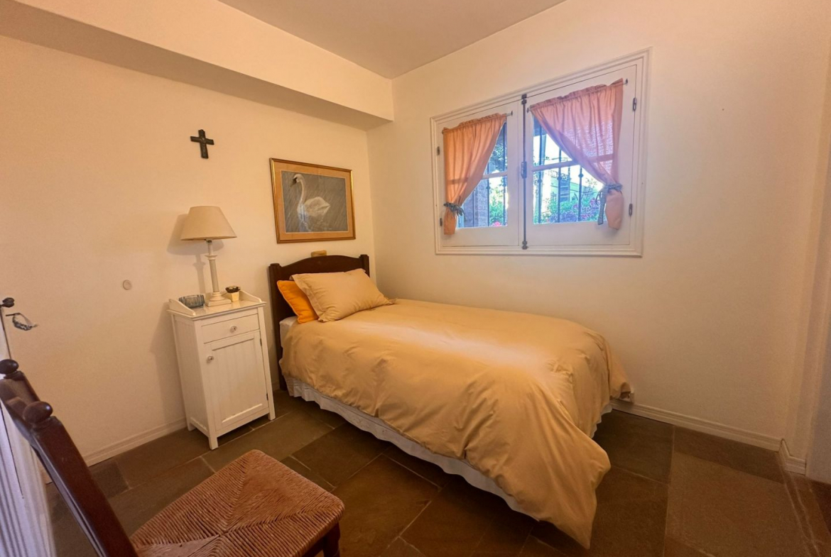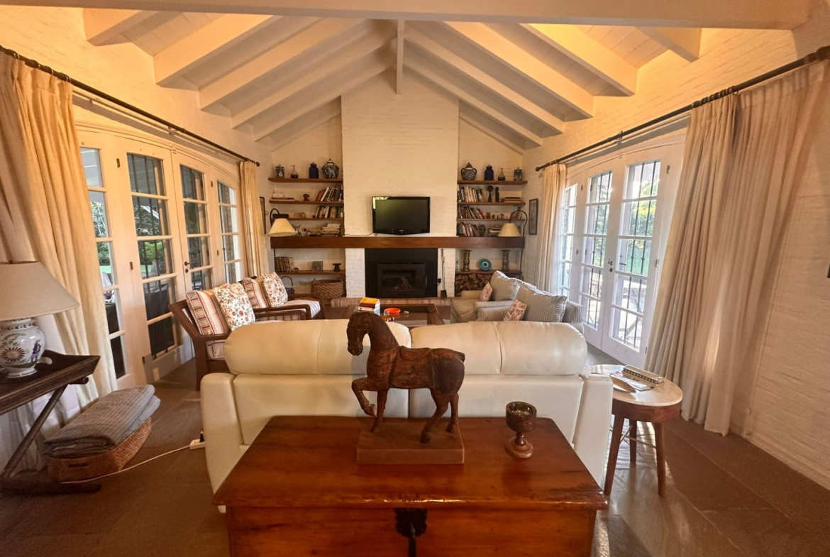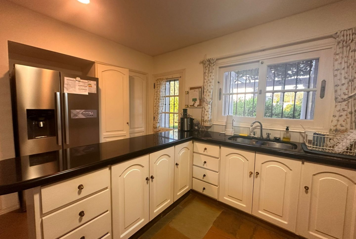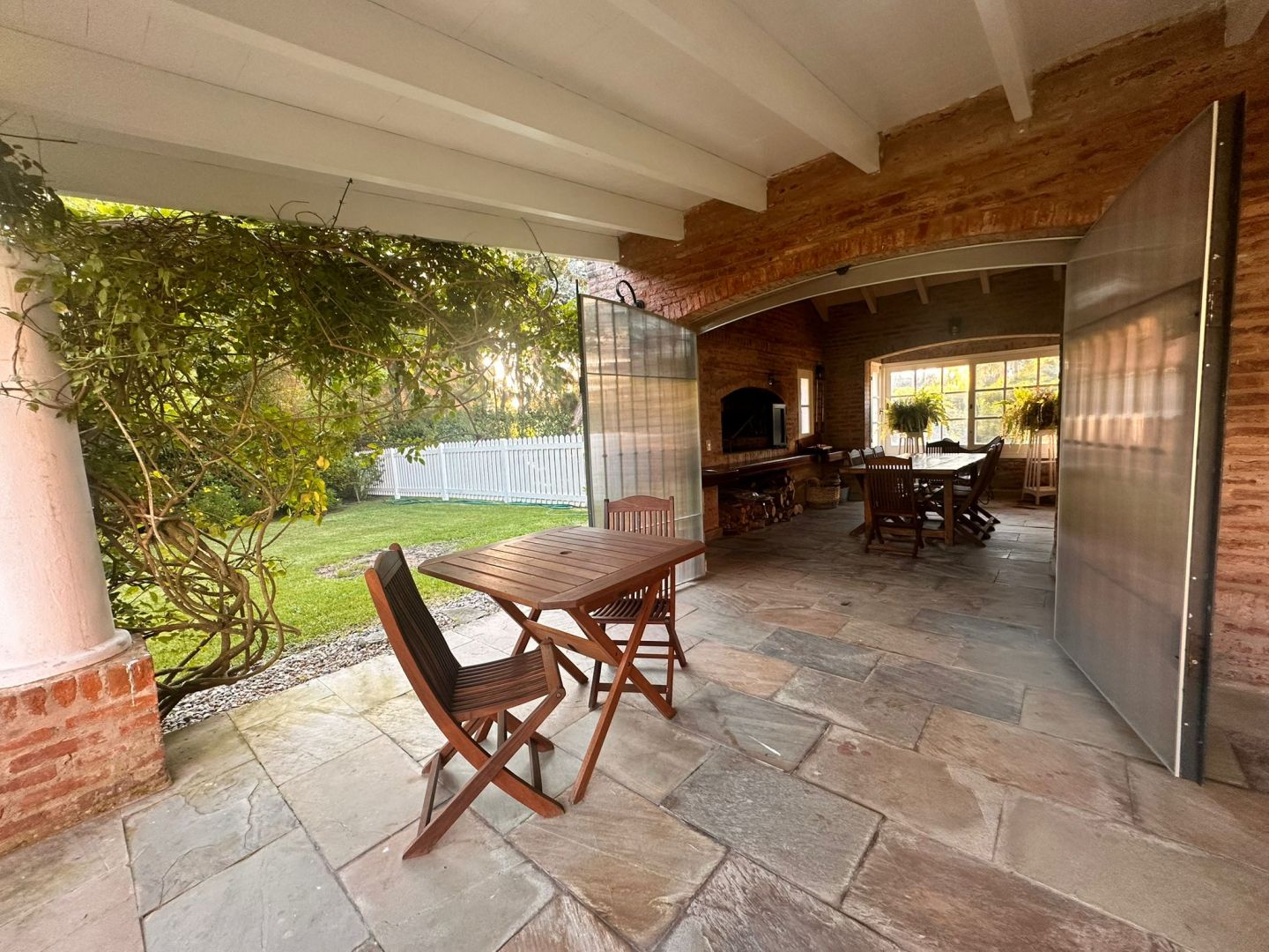 Hermosa galería con vista al jardín y su entorno, mas parrillero cerrado. Ropa blanca, servicio de alarma, jardinero y limpiadora por horas incluido.