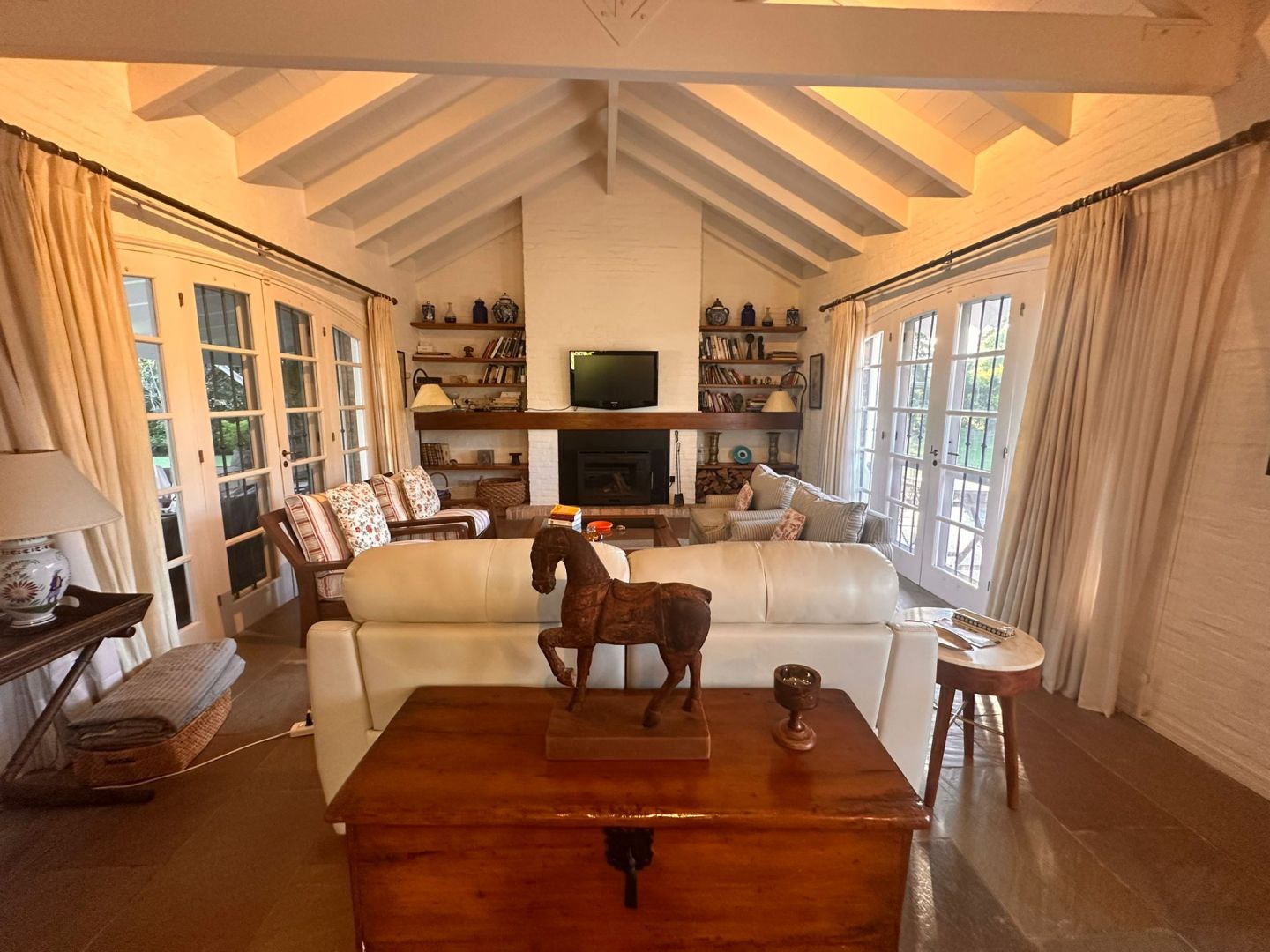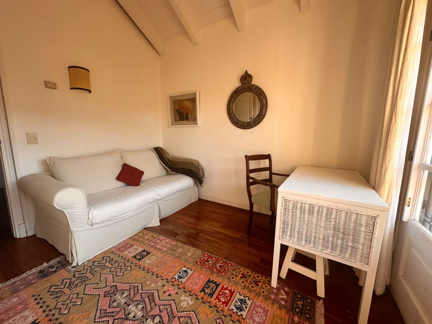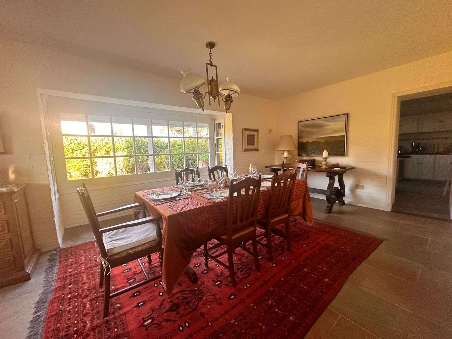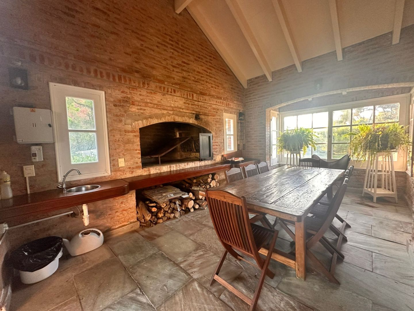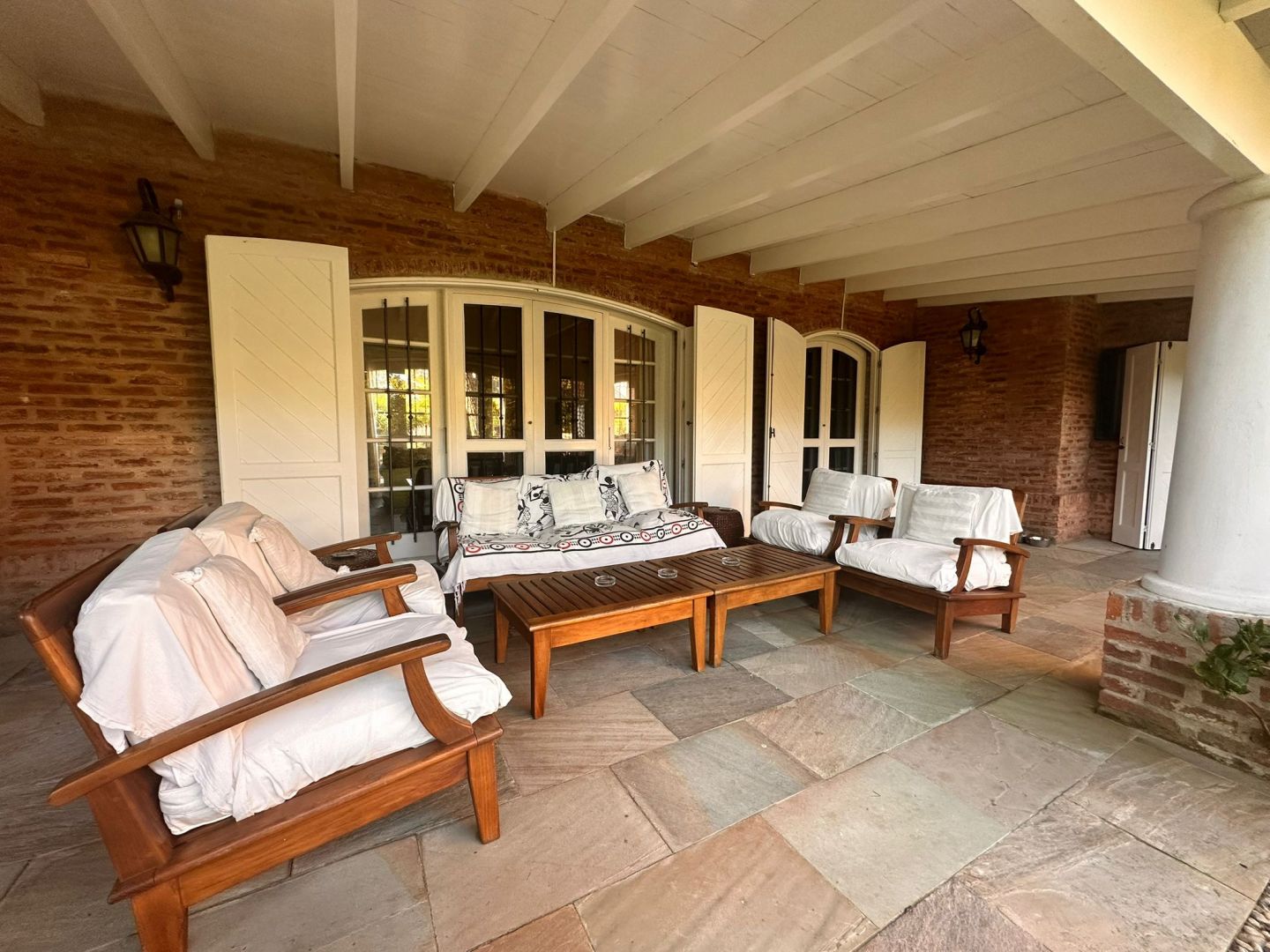 Hermosa galería con vista al jardín y su entorno, mas parrillero cerrado. Ropa blanca, servicio de alarma, jardinero y limpiadora por horas incluido.