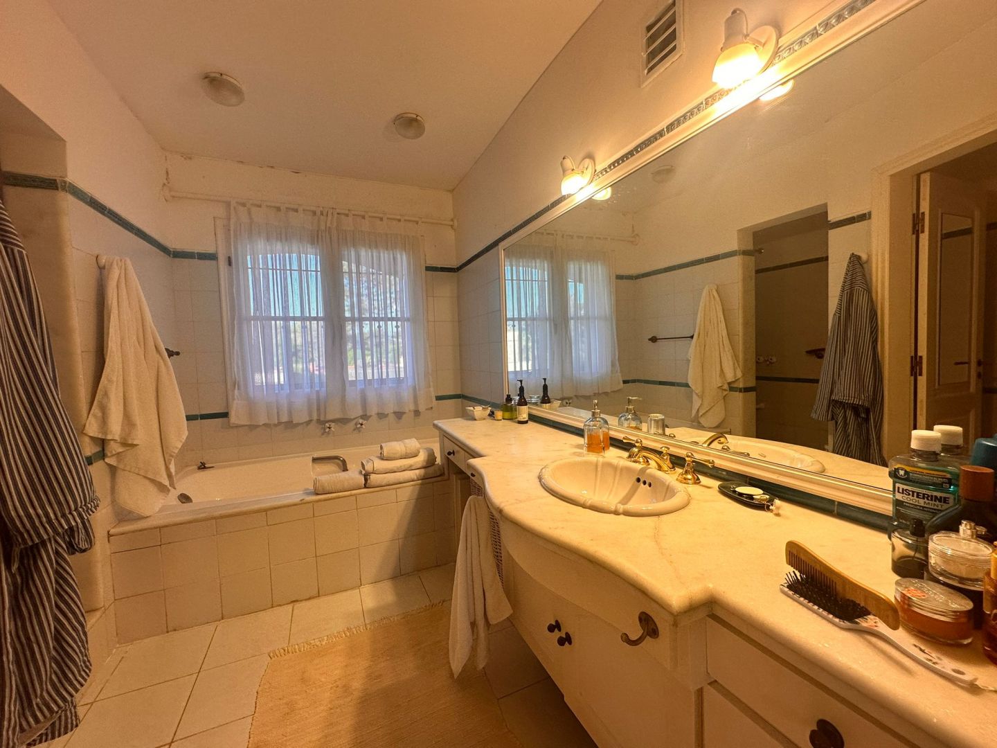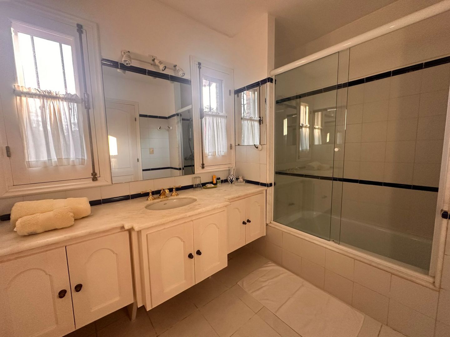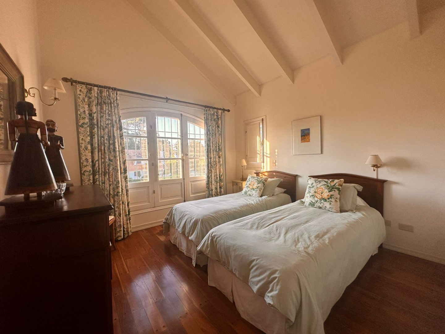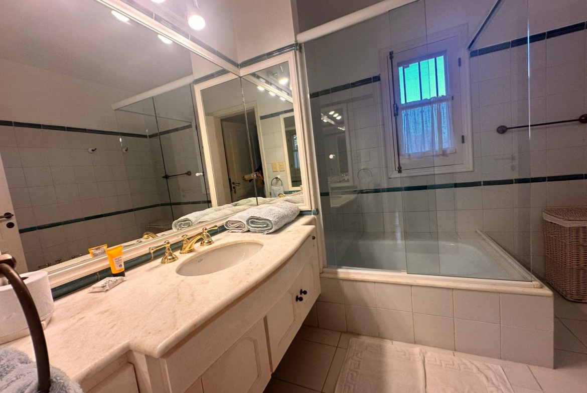 En la segunda planta hay cuatro dormitorios en total, uno con sofá cama , otro con dos camas de una plaza, uno mas con cama matrimonial y baño, mas la master suite con baño que incluye jacuzzi y ducha y balcón cerrado.