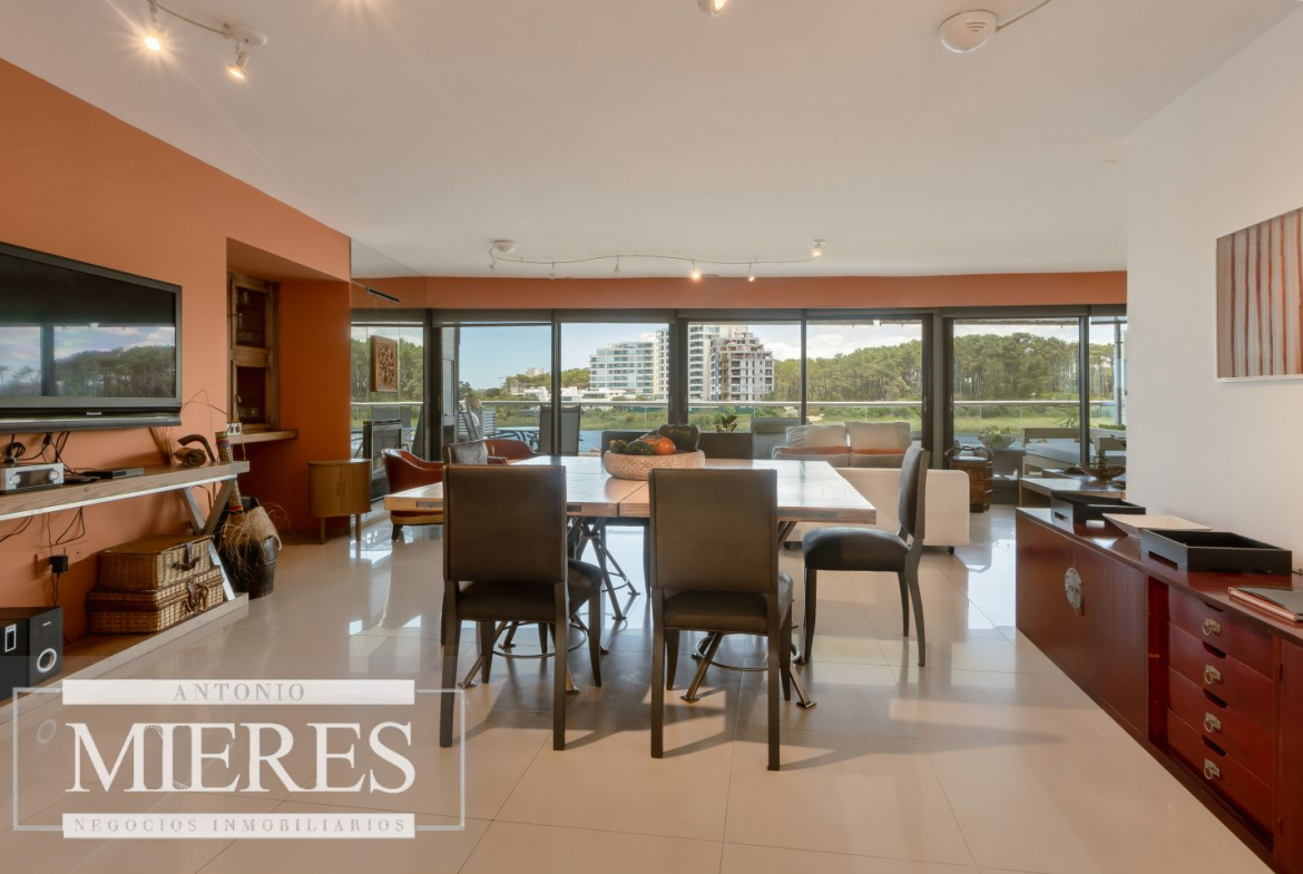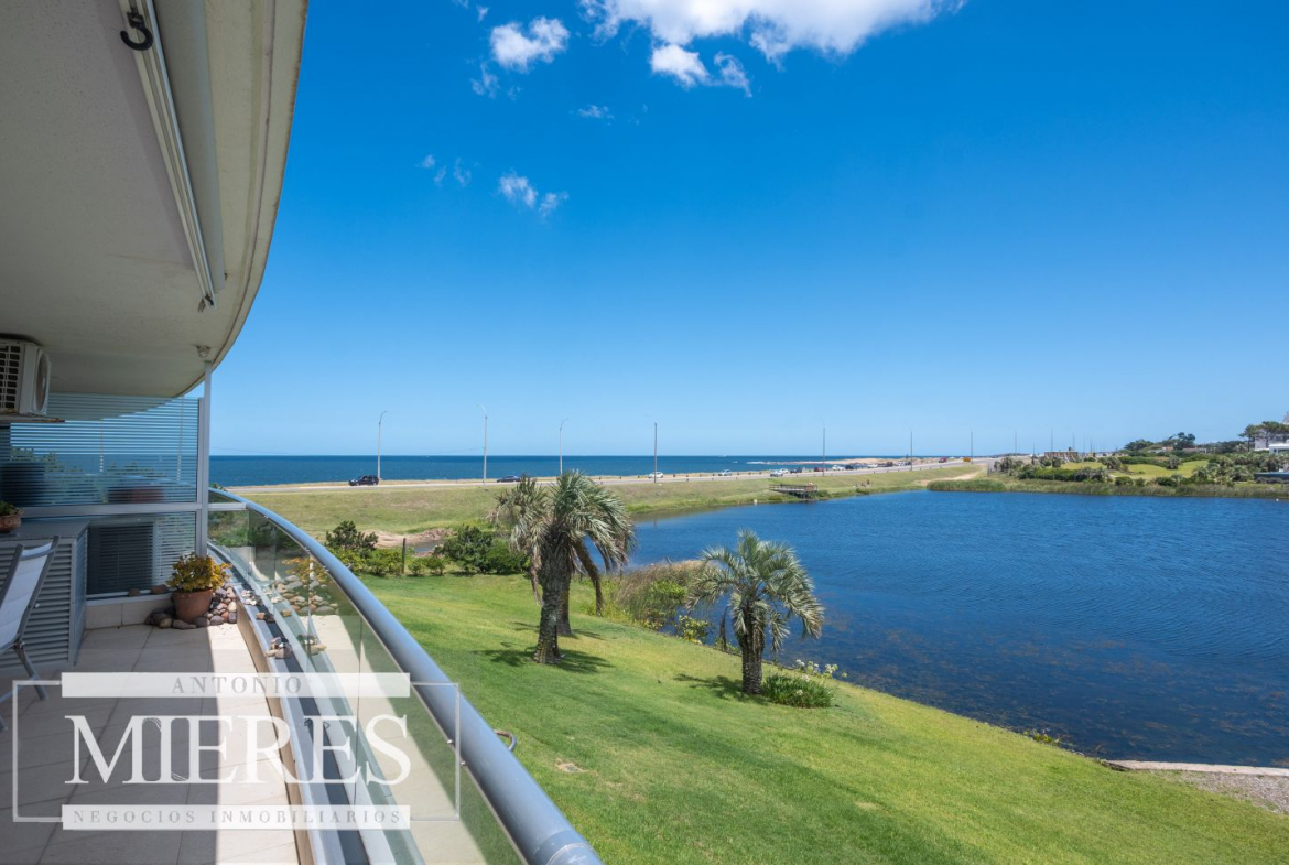 Ubicado en Playa Mansa, frente a la Laguna del Diario, se destaca por su vista abierta y privilegiada a la laguna y al mar, que se disfruta plenamente desde su amplio y agradable balcón con parrillero propio.