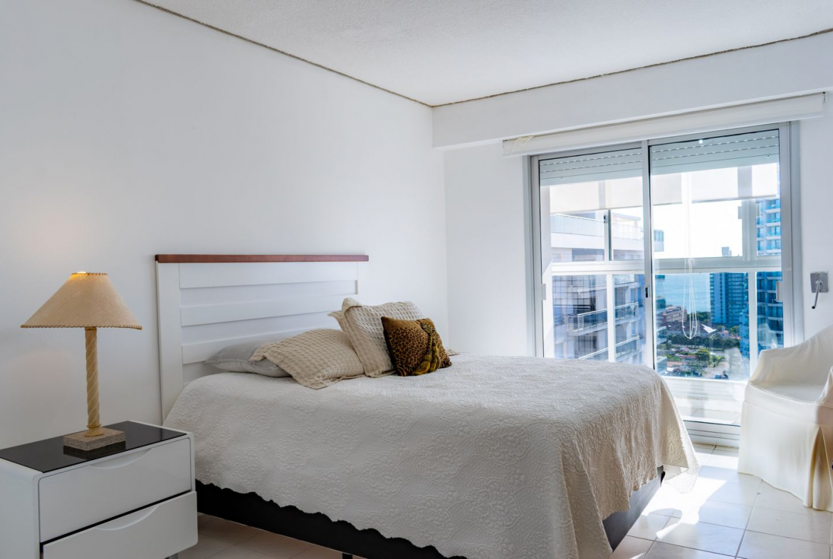 Torre con muy buenos servicios y orientación a Playa Mansa. Muy luminoso y bien decorado. Dormitorio y medio , living comedor, balcón, y cocina semi integrada. Ideal para parejas o persona sola que quieran disfrutar de la ubicación sobre Av. Chiverta y cerca de todo. Servicio de mucama todo el año y amenities.