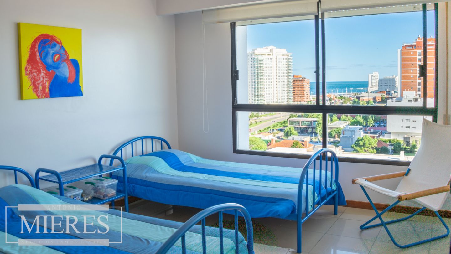 Dos dormitorios en pasillo que comparten un baño, y gran master suite en suite con jacuzzi, con balcón integrado proporcionado un espacio más al dormitorio con hermosas vistas a playa Brava.  La propiedad cuenta con diferentes espacios de guardado, aires acondicionado y losa radiante sectorizada . Cochera en sub suelo con baulera.