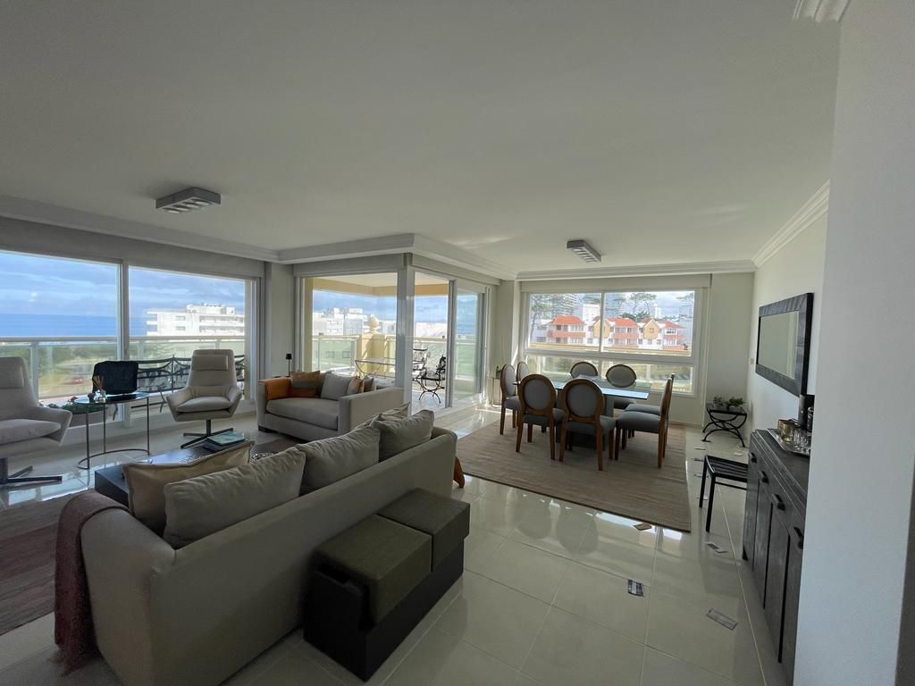 En primera linea, parada 16 de la Mansa, una de las mejores torres de lujo de Punta del Este Le Jardin, ofrece este único departamento de cuatro dormitorios en excelente estado.