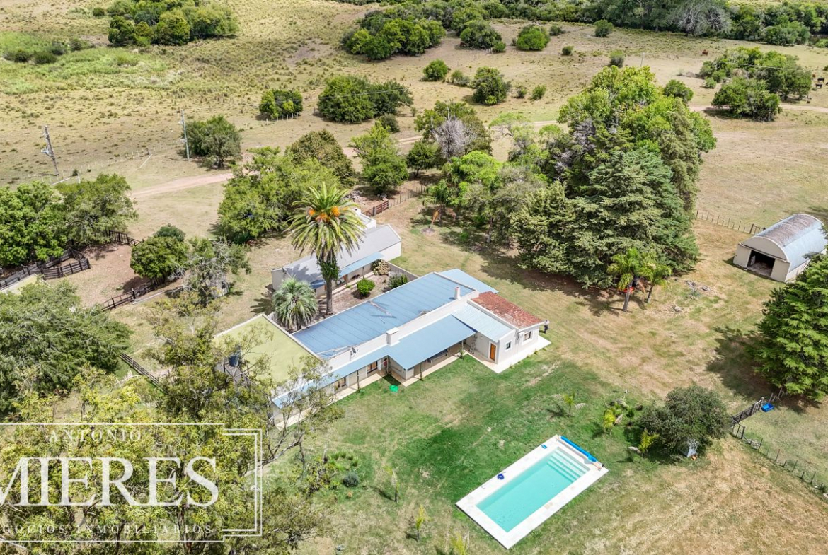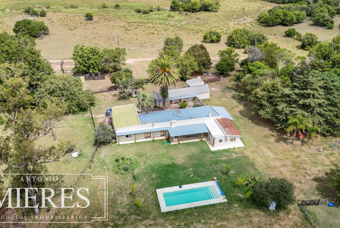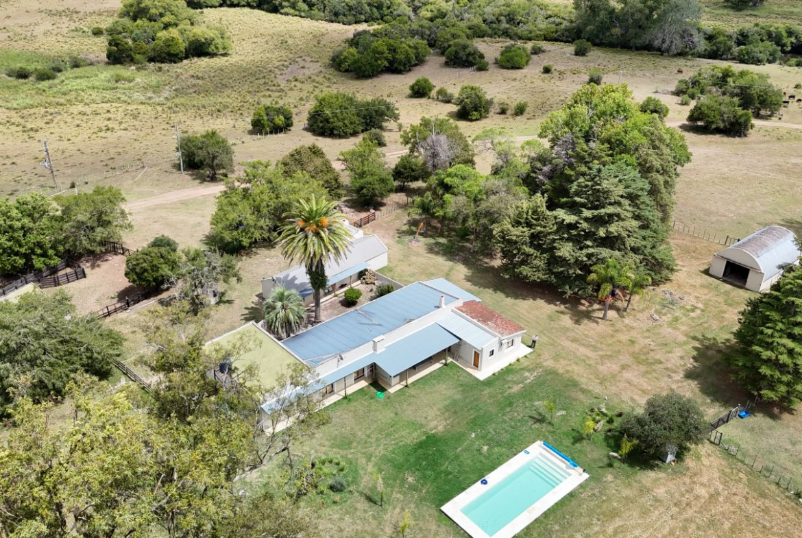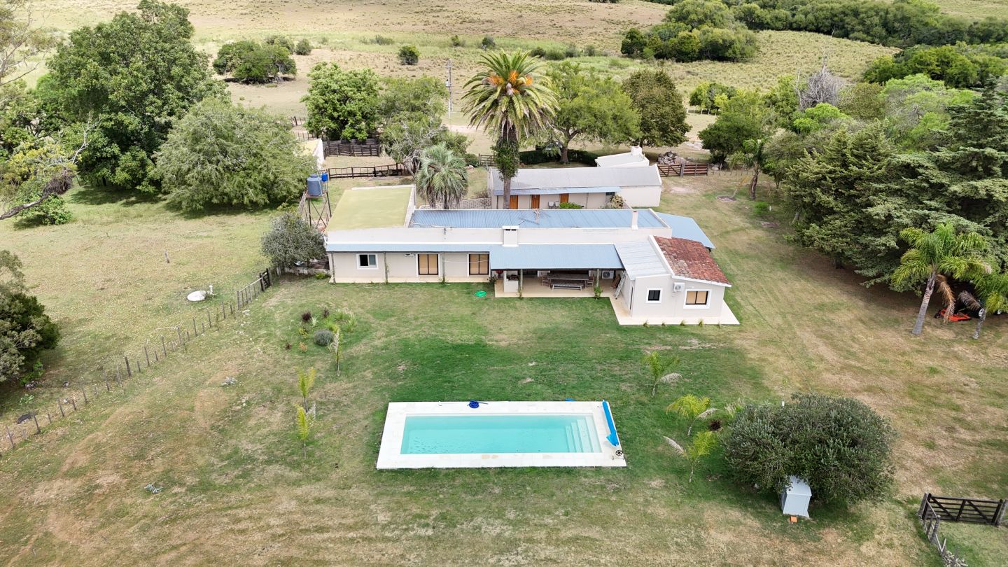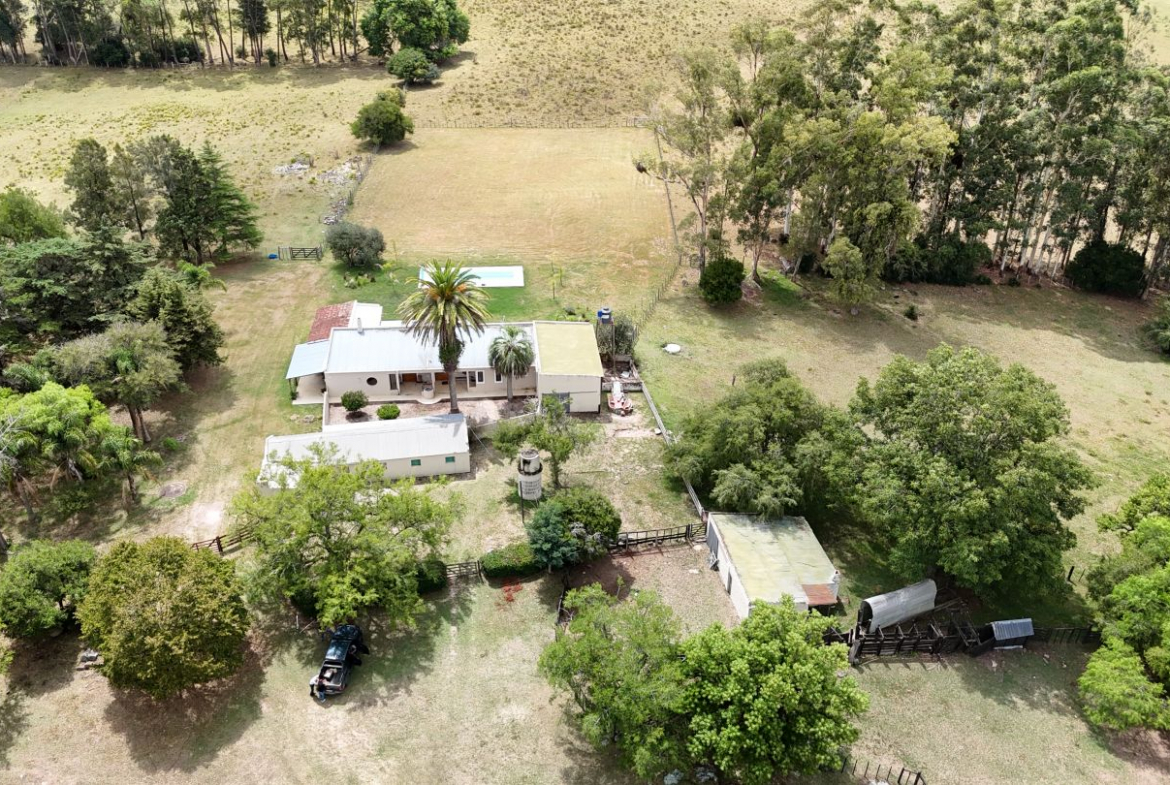 El campo se complementa con una importante infraestructura residencial, destacándose una casa principal de gran porte, con 6 dormitorios, 3 baños y cocina-comedor integrados, pensada tanto para vivienda permanente como para estadías prolongadas. Además, cuenta con casa para caseros, galpón para maquinaria, piscina, y un cuidado parque y jardín, logrando un equilibrio perfecto entre producción y calidad de vida rural.