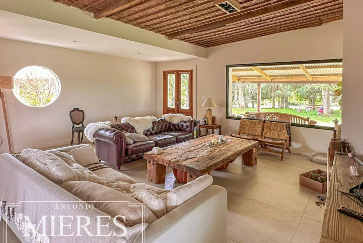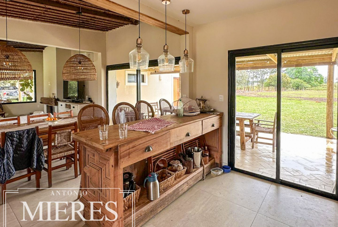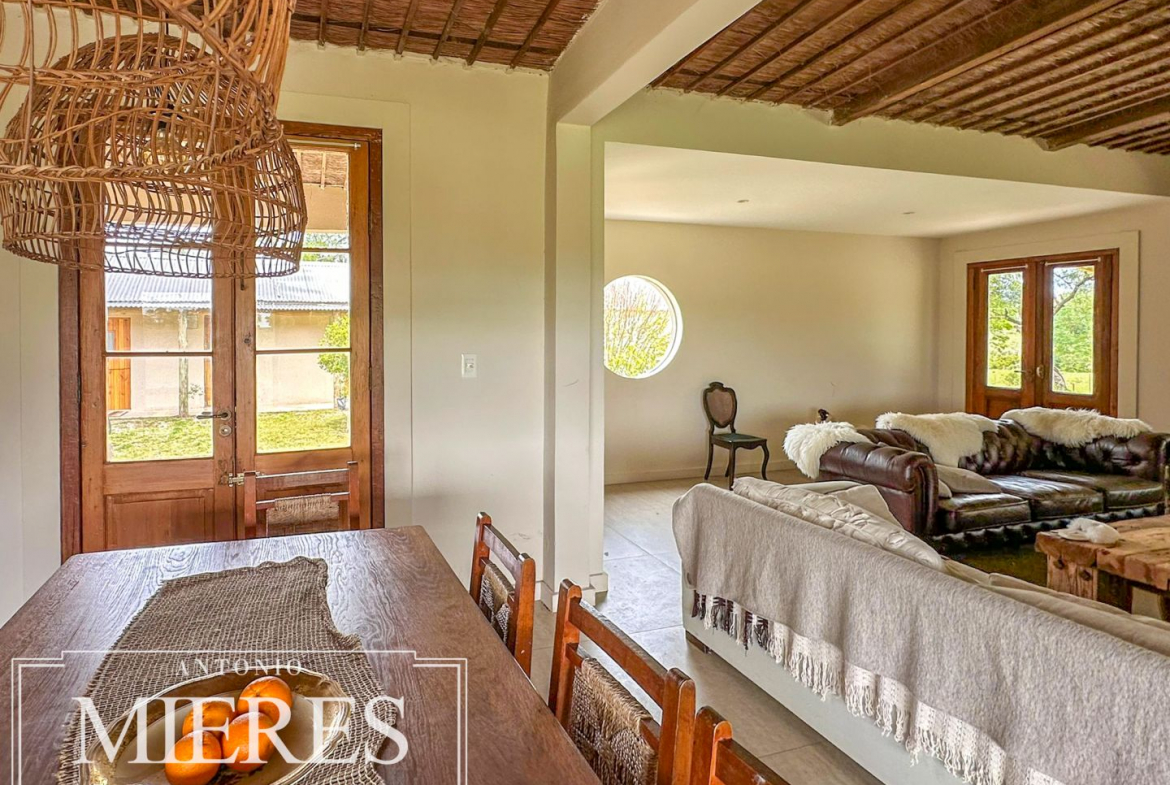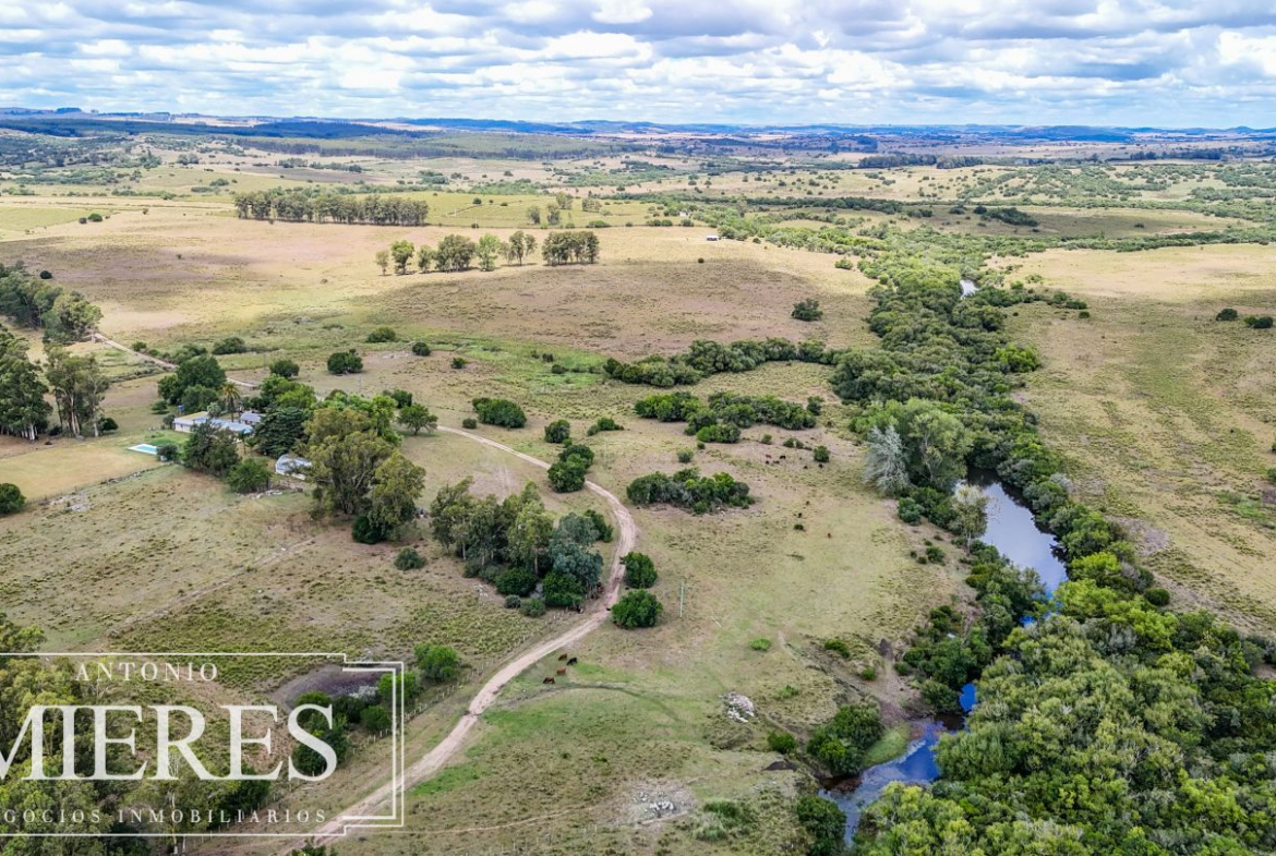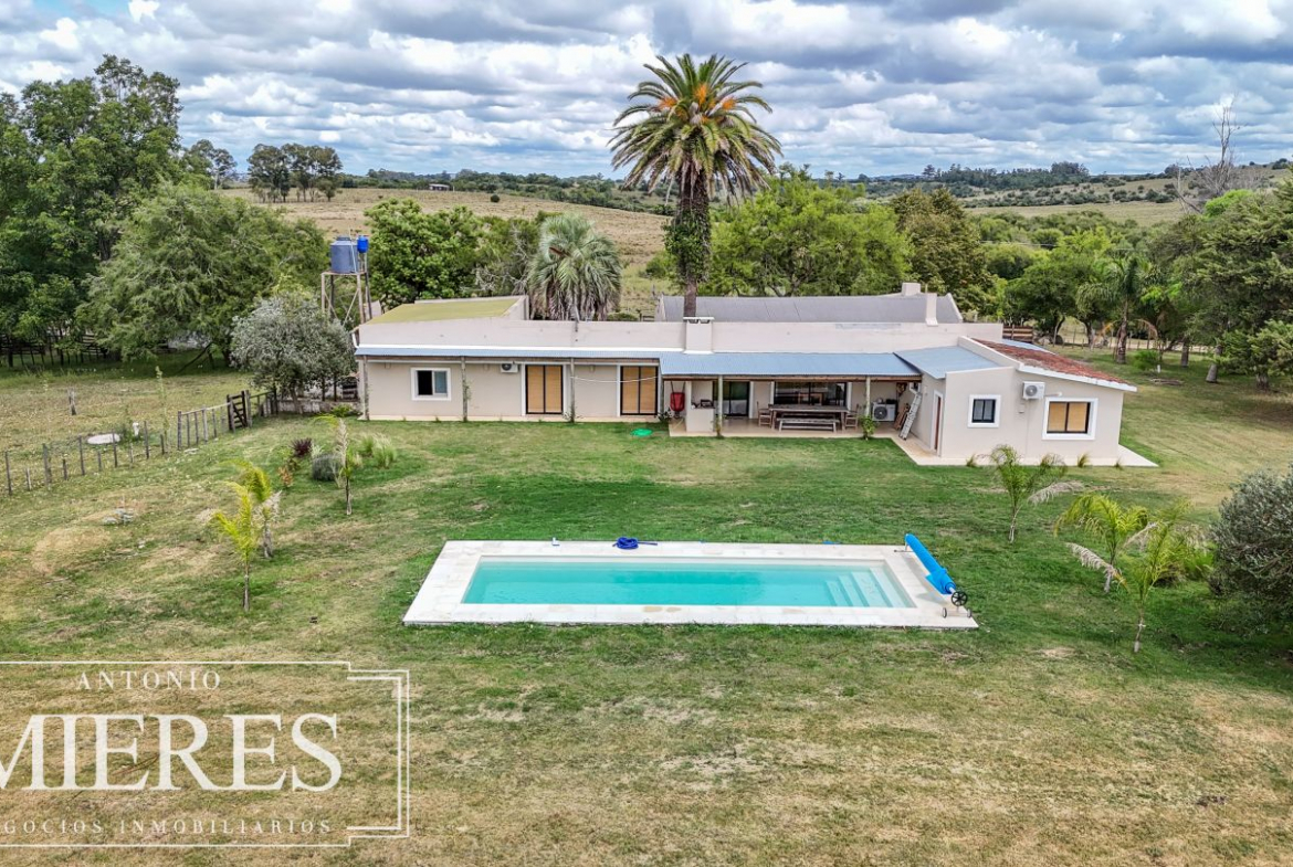 El campo se complementa con una importante infraestructura residencial, destacándose una casa principal de gran porte, con 6 dormitorios, 3 baños y cocina-comedor integrados, pensada tanto para vivienda permanente como para estadías prolongadas. Además, cuenta con casa para caseros, galpón para maquinaria, piscina, y un cuidado parque y jardín, logrando un equilibrio perfecto entre producción y calidad de vida rural.