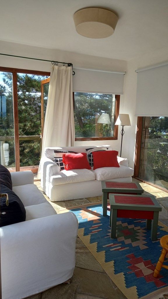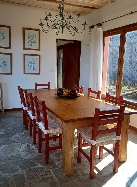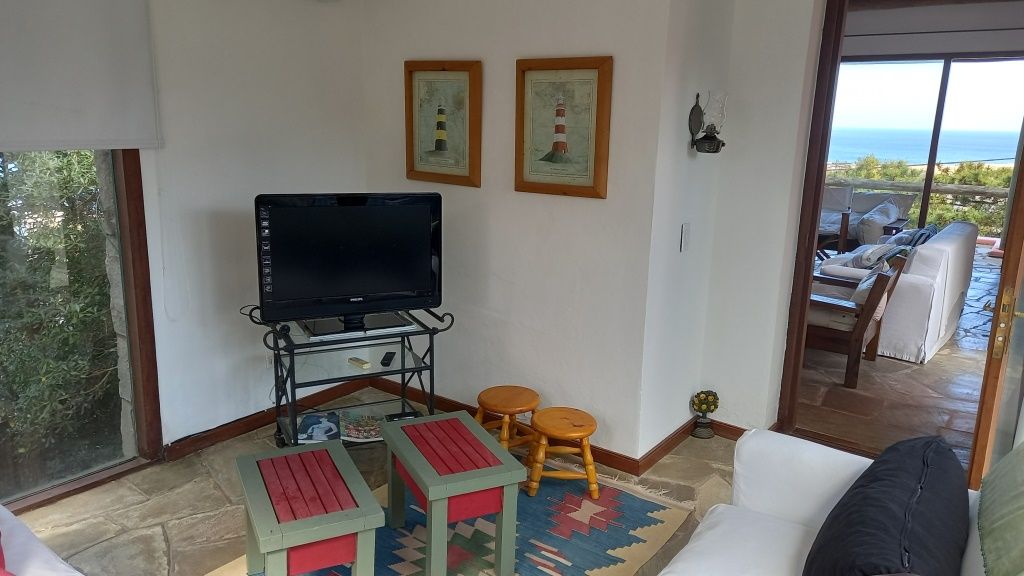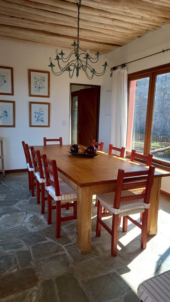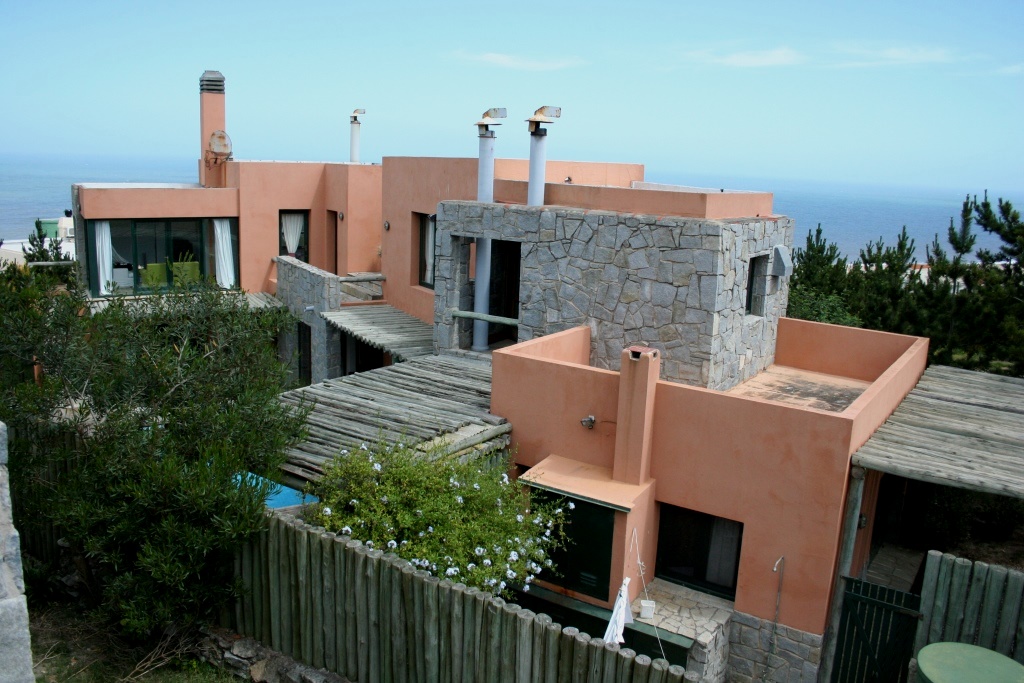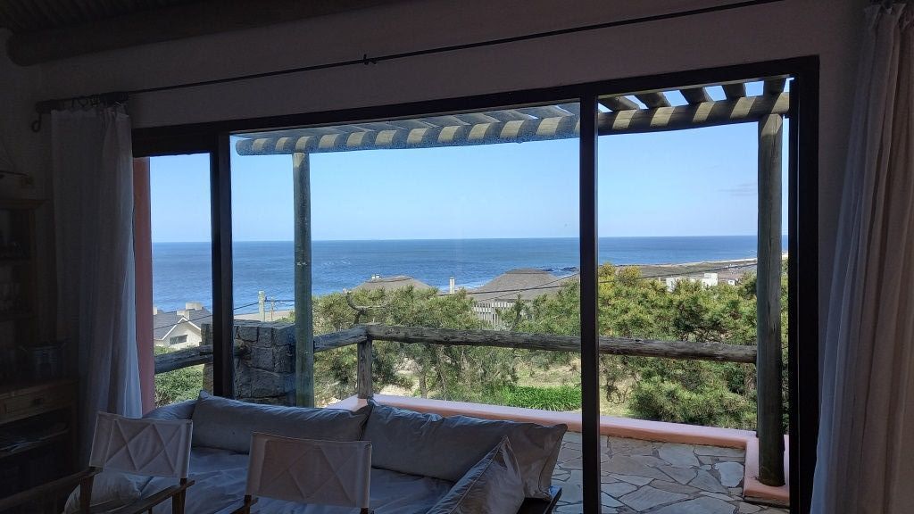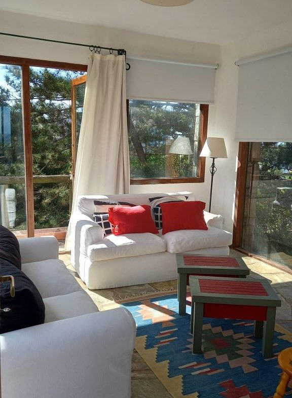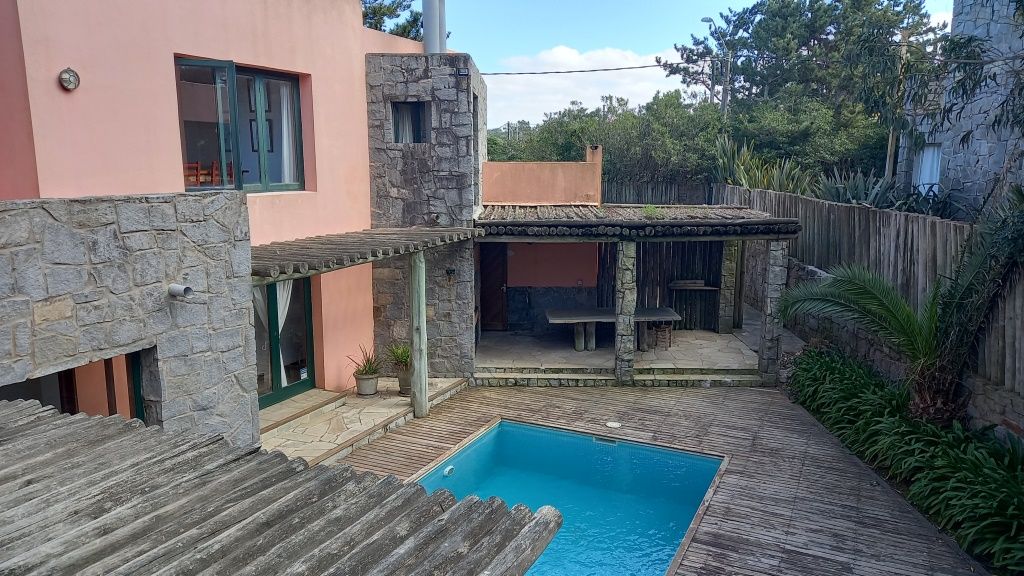 Alquiler temporario de casa en El Chorro desarrollada en dos plantas con excelentes vistas al mar, Isla de Lobos, Manantiales y Punta del Este. En planta alta cómodo living con salida a balcón terraza con espectacular vista, comedor, estar o sala de tv con escalera de acceso al sector de piscina, y practica cocina (con acceso también dese PB). En PB toilette y 3 suites, la principal con vestidor, otra de ellos con puerta ventana al deck y la piscina; además dependencia de servicio con baño, lavadero y garage. Totalmente equipada.