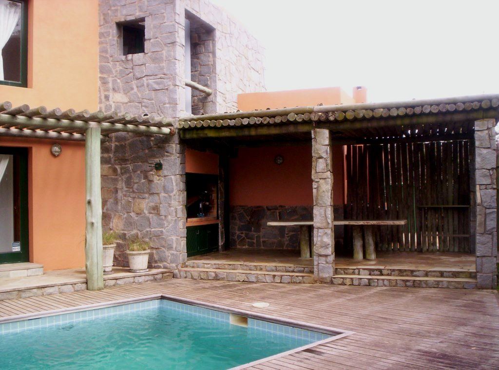 Piscina con deck perimetral, parrillero techado con comedor y jardín con mucha privacidad respecto a los linderos.
