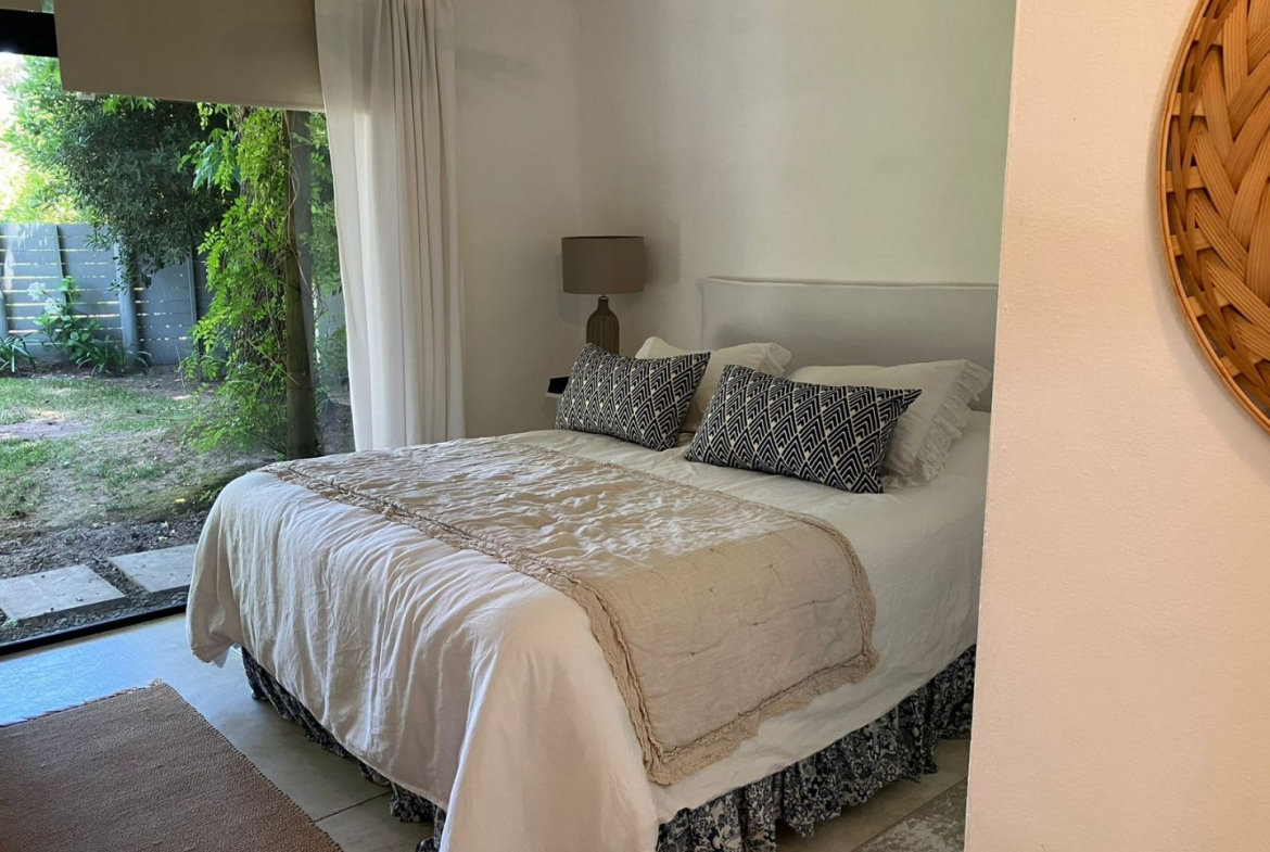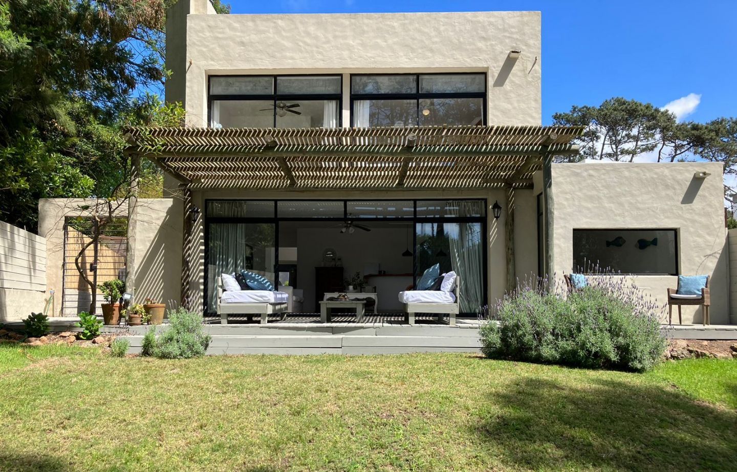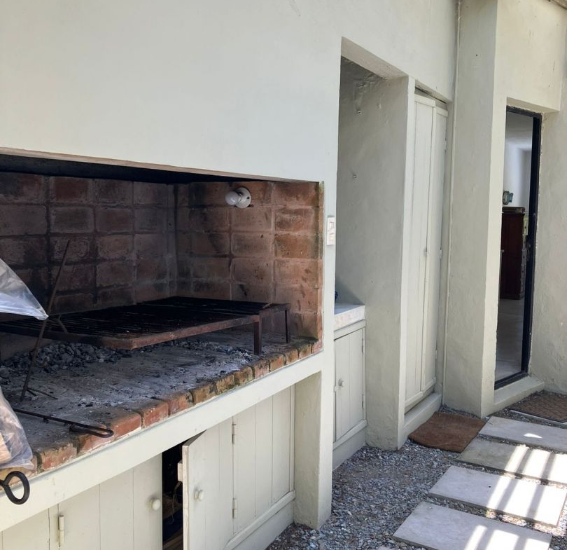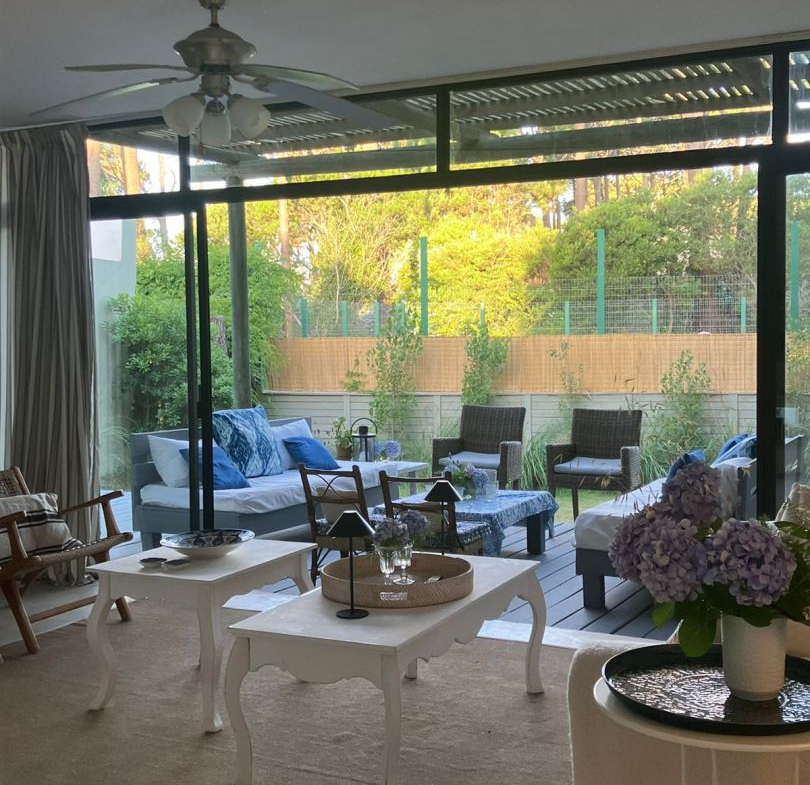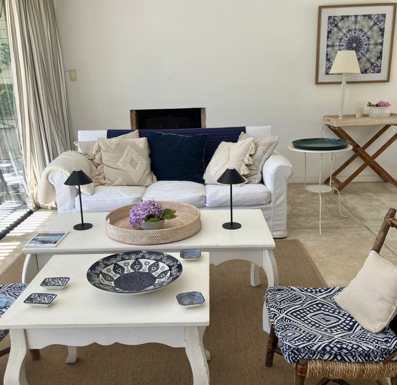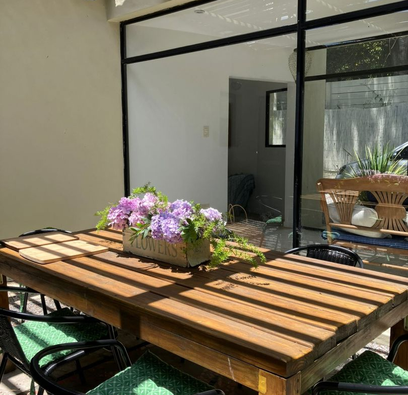 Tras una luminosa recepción con vista al patio interior, se accede a ambientes cálidos y naturales. Un living con vista al jardín integrado a la cocina tipo americana y el comedor con ventilador de techo, cuatro dormitorios, en planta baja un dormitorio en suite con cama matrimonial y aire acondicionado, un dormitorio con una cama marinera y aire acondicionado y un baño completo. En la planta alta dos dormitorios con dos cama c/u y ventilador de techo y un baño. Dependencia de servicio con baño independiente a la casa. Parrillero y estacionamiento.