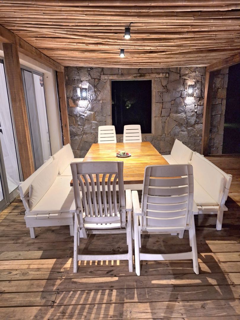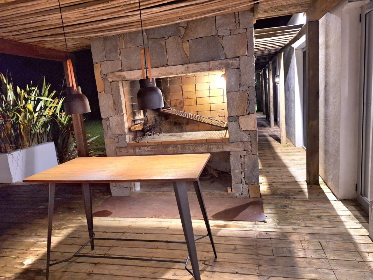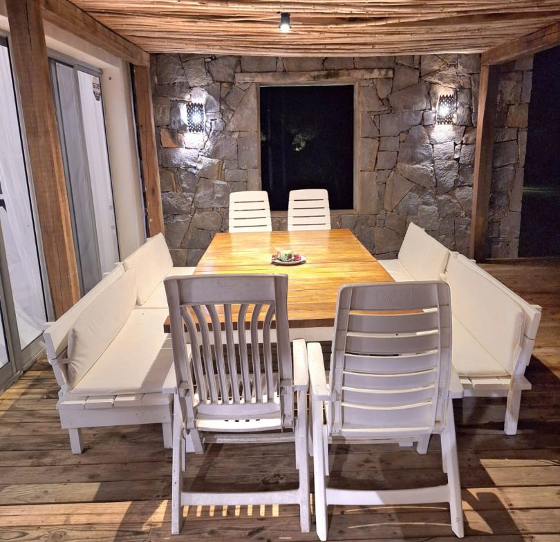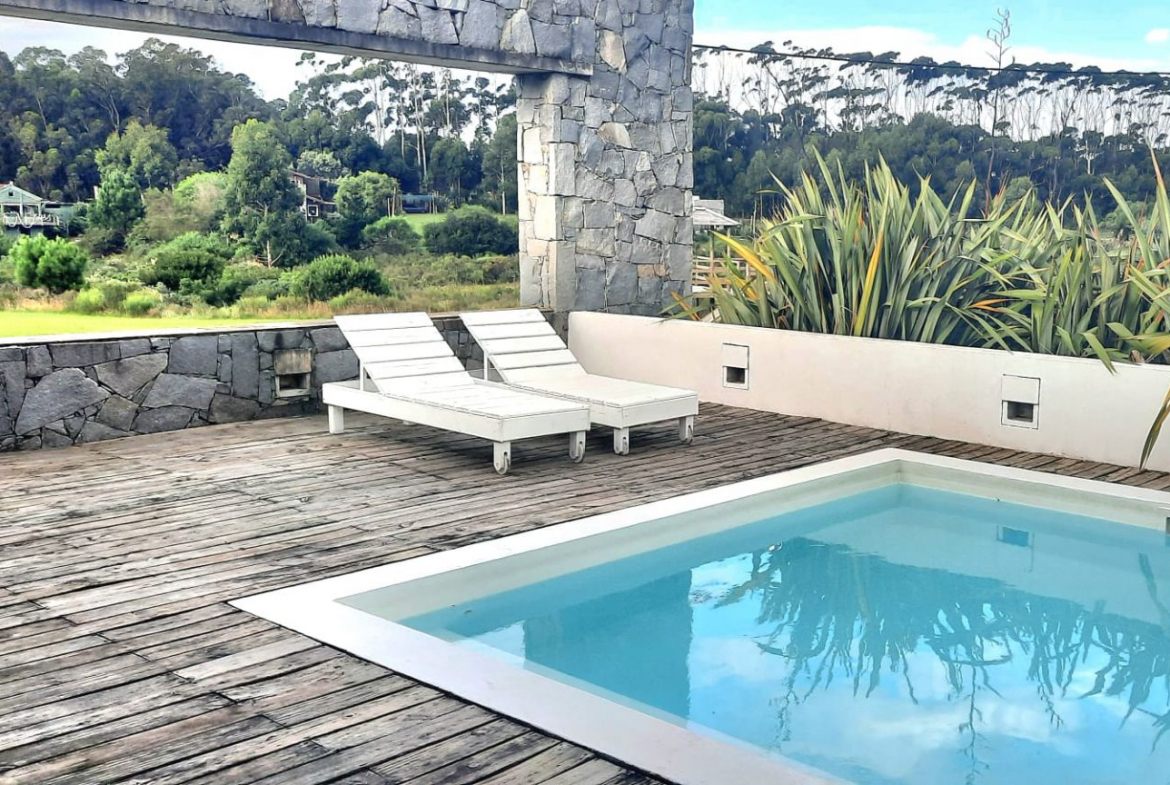Cómoda terraza con vista al mar, parrillero y piscina.