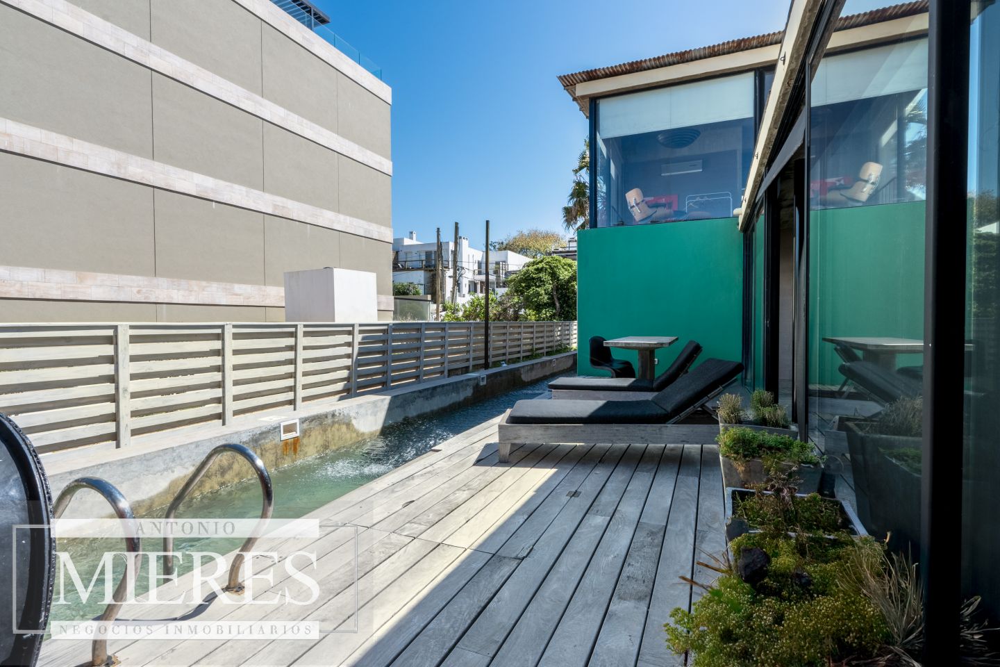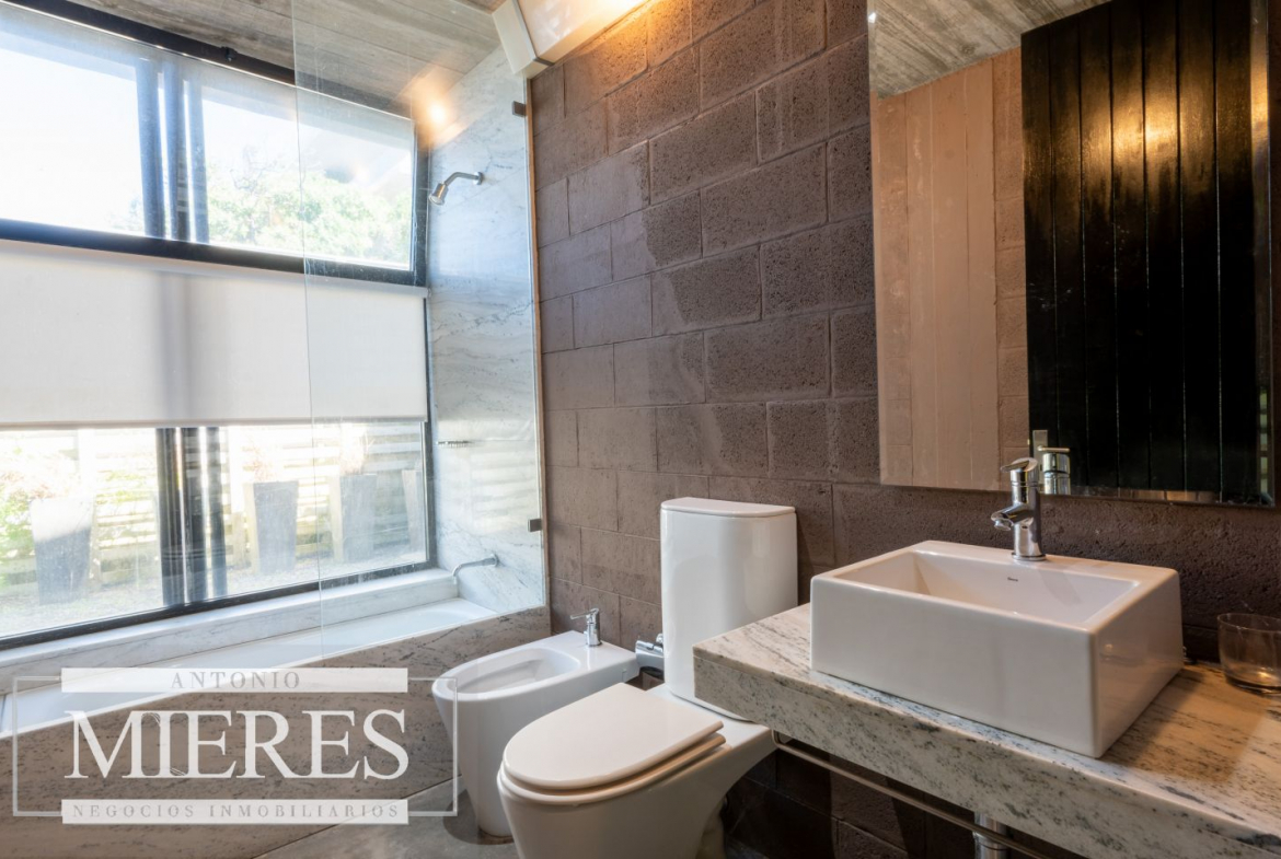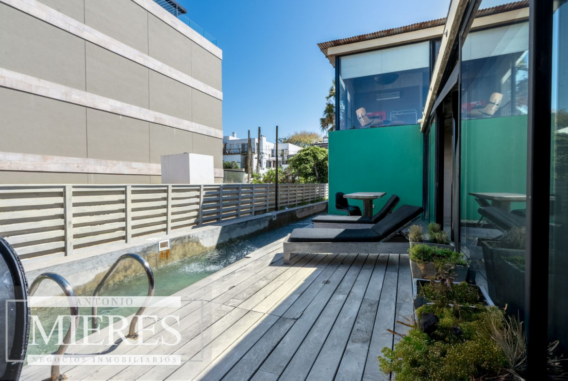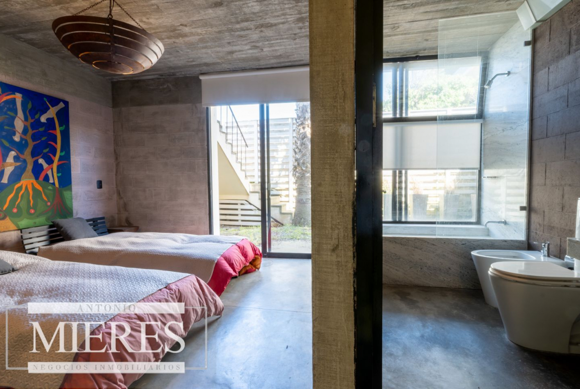 • Segundo nivel: amplio living comedor con cocina integrada, terraza con vista, lavadero, toilette, barbacoa conectada al deck y piscina integrada al living, creando un espacio único para disfrutar todo el año. Además, cuenta con una habitación simple en suite.