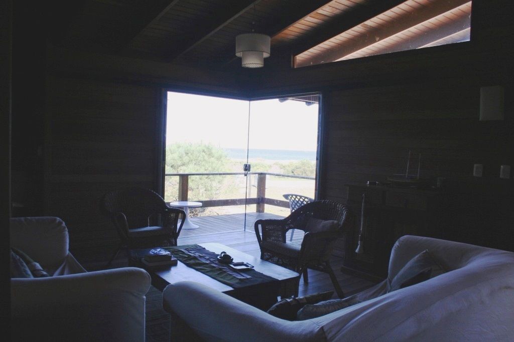 Planta alta: un muy amplio living-comedor-cocina con dos puertas ventanas esquineras con salida a un gran balcón terraza techado con vista al mar, toilette. Estructura de hormigón, y excelente carpintería. Subsuelo: Amplio playroom, baño, lavadero y cochera techada para dos autos.