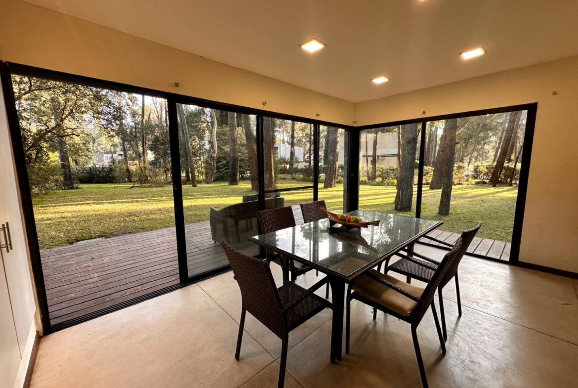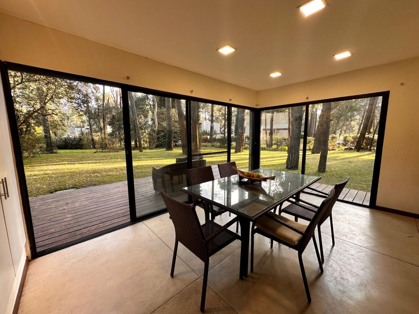 Ubicada sobre una de las principales avenidas del complejo cerrado, frente al restaurante, recepción y zona de juegos, esta propiedad ofrece amplitud y comodidad en un entorno natural único, a pasos de la playa y rodeada de verde. La casa cuenta con cinco dormitorios y cuatro baños en total, incluyendo dependencia de servicio.