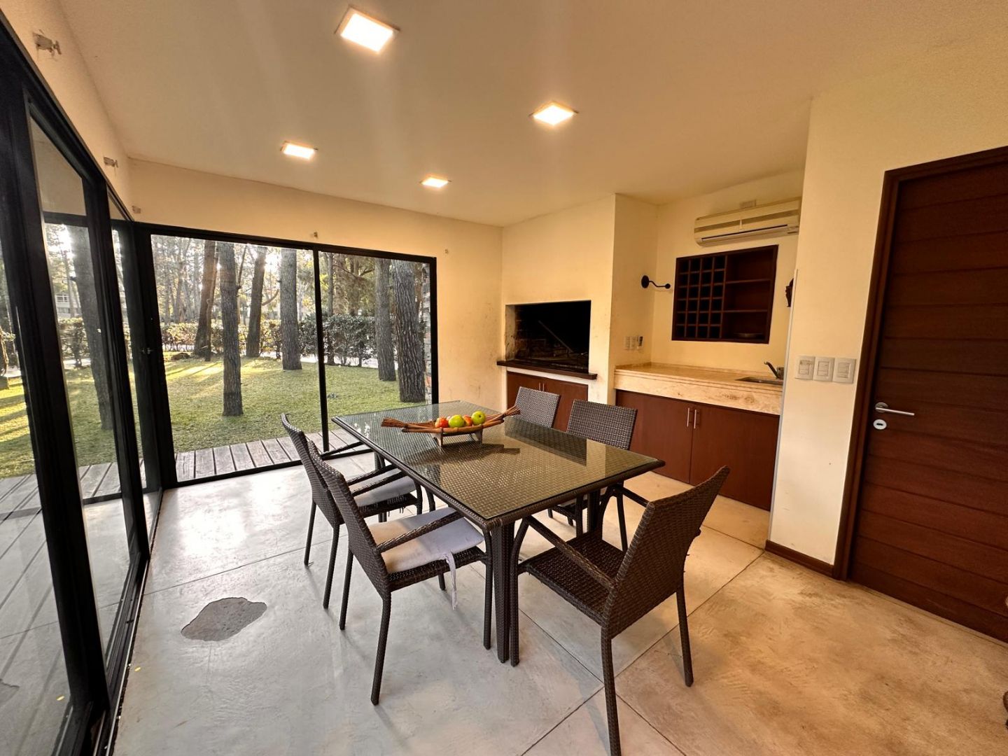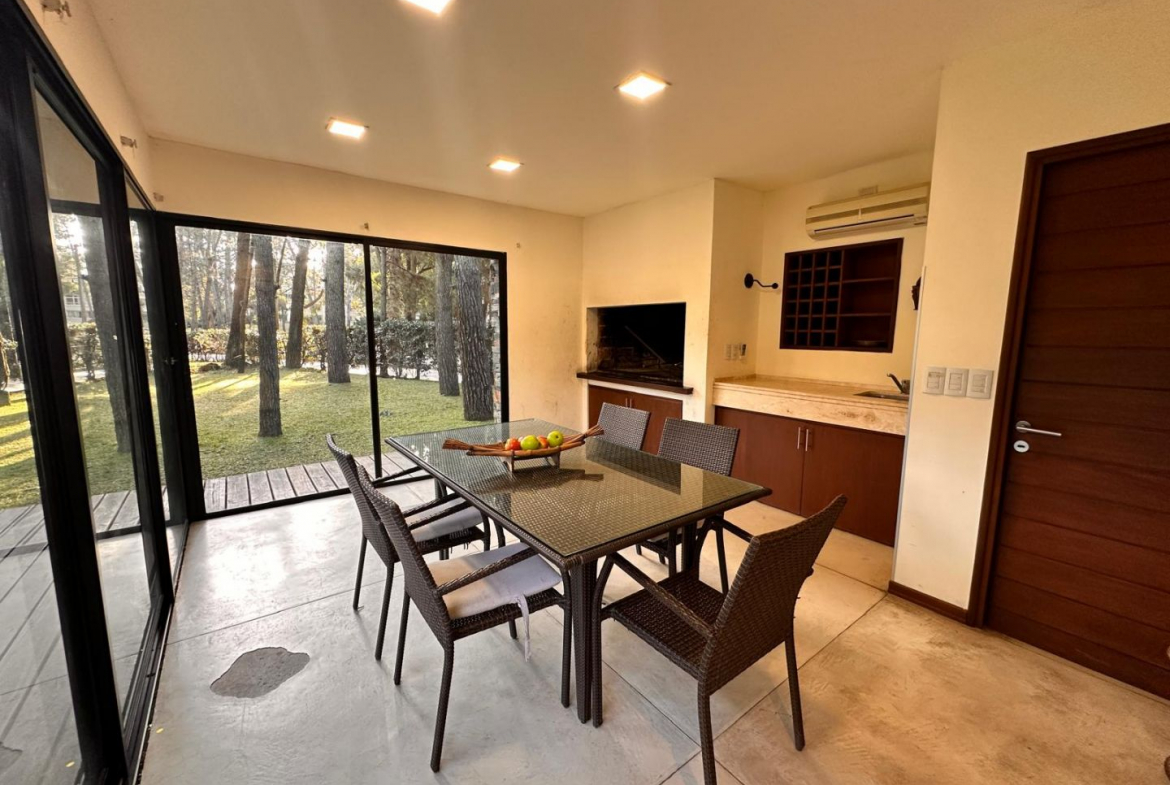 En planta baja dispone de dos dormitorios que comparten un baño completo con bañera, además de toilette, amplio living comedor con cocina semi integrada mediante barra, estufa de alto rendimiento y aire acondicionado en todos los ambientes. En la planta alta se encuentra un dormitorio secundario, un baño completo con ducha, y la suite principal con vestidor y baño en suite.