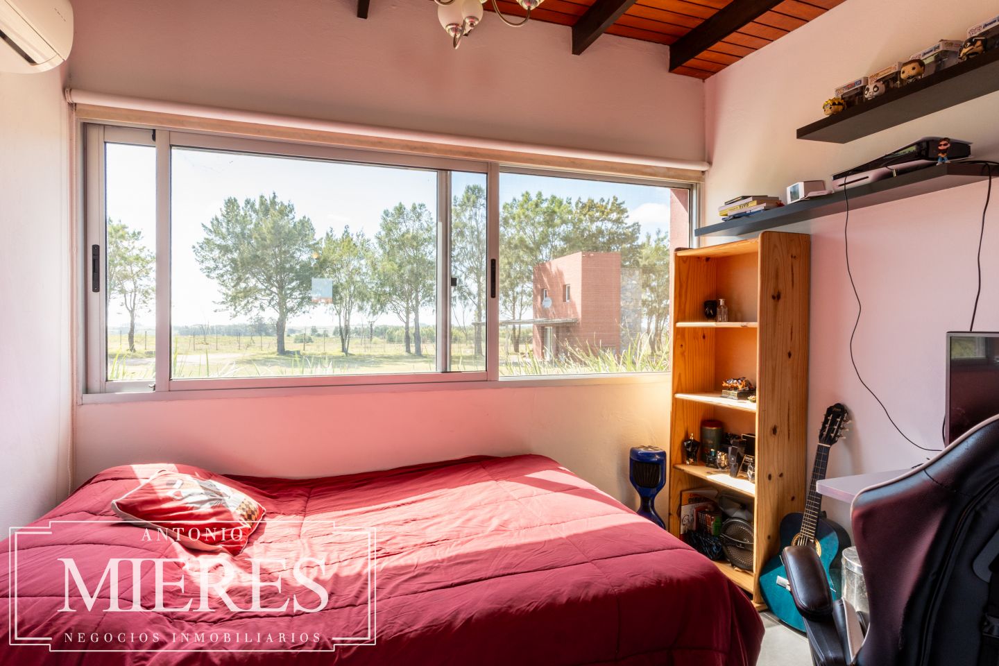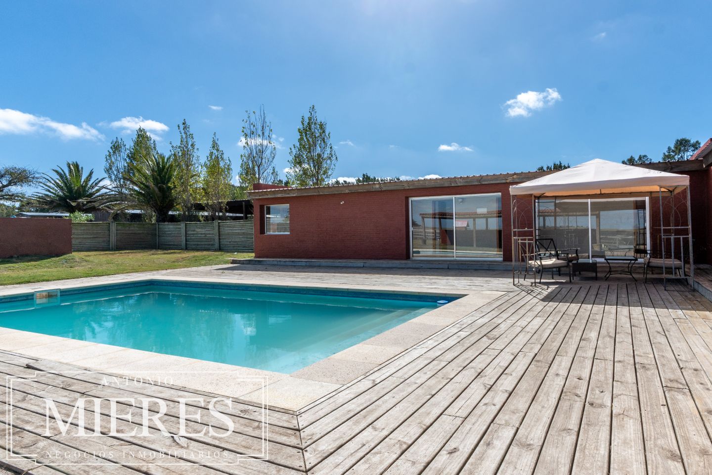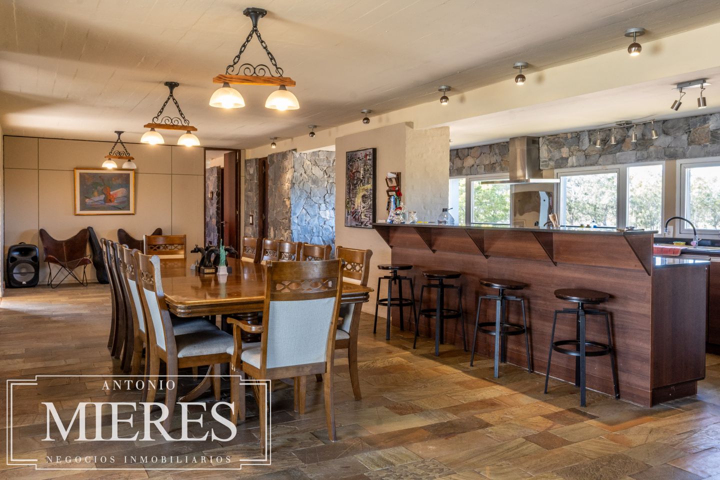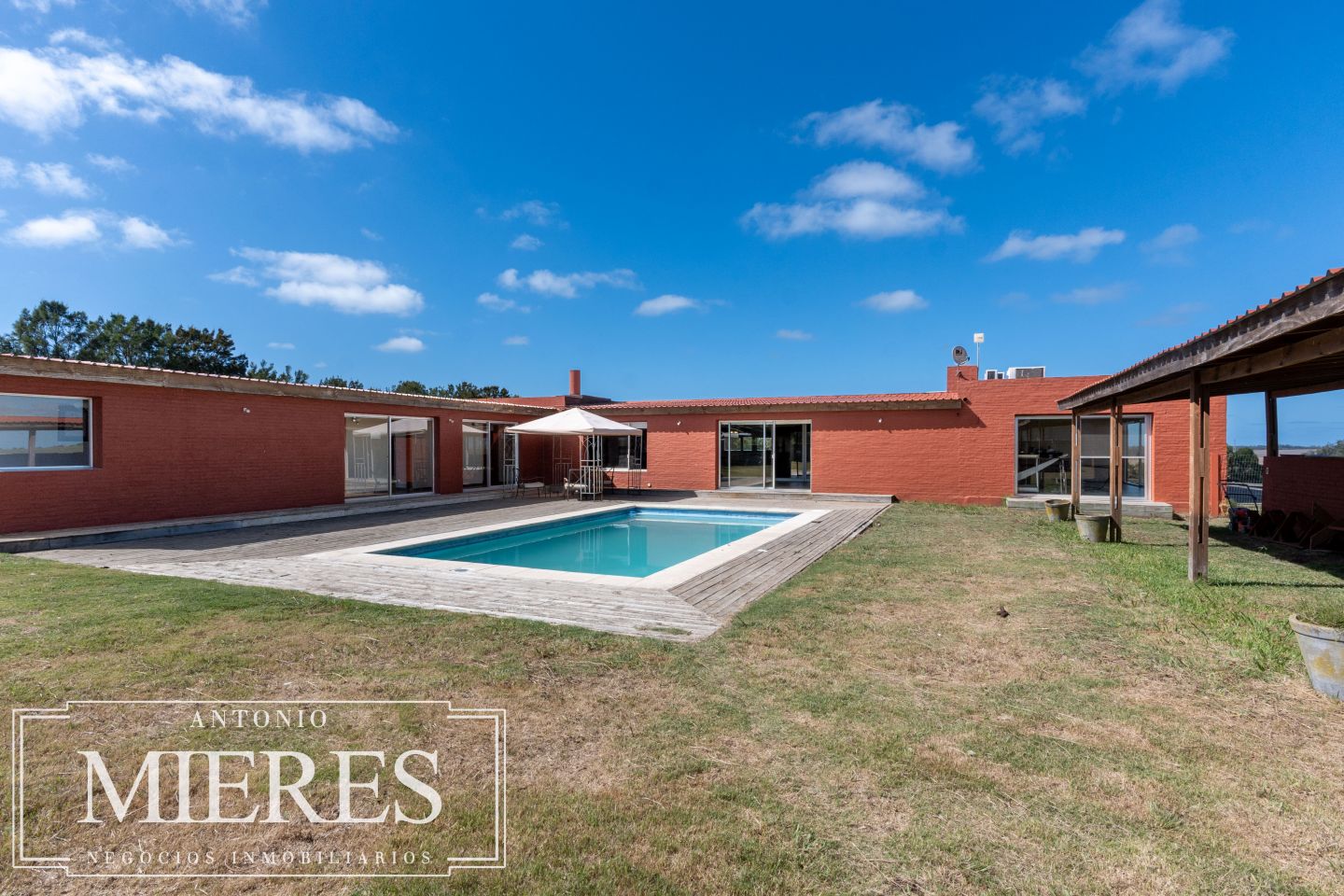 La casa principal, de 360 m², ofrece un diseño cómodo y funcional, con 5 dormitorios en suite y 6 baños. Sus amplios espacios interiores incluyen cocina integrada, living y comedor con grandes ventanales que permiten disfrutar de vistas abiertas al entorno natural. Además, dispone de playroom, barbacoa cerrada, piscina y cocheras, generando un ambiente ideal tanto para el disfrute familiar como para recibir invitados.
