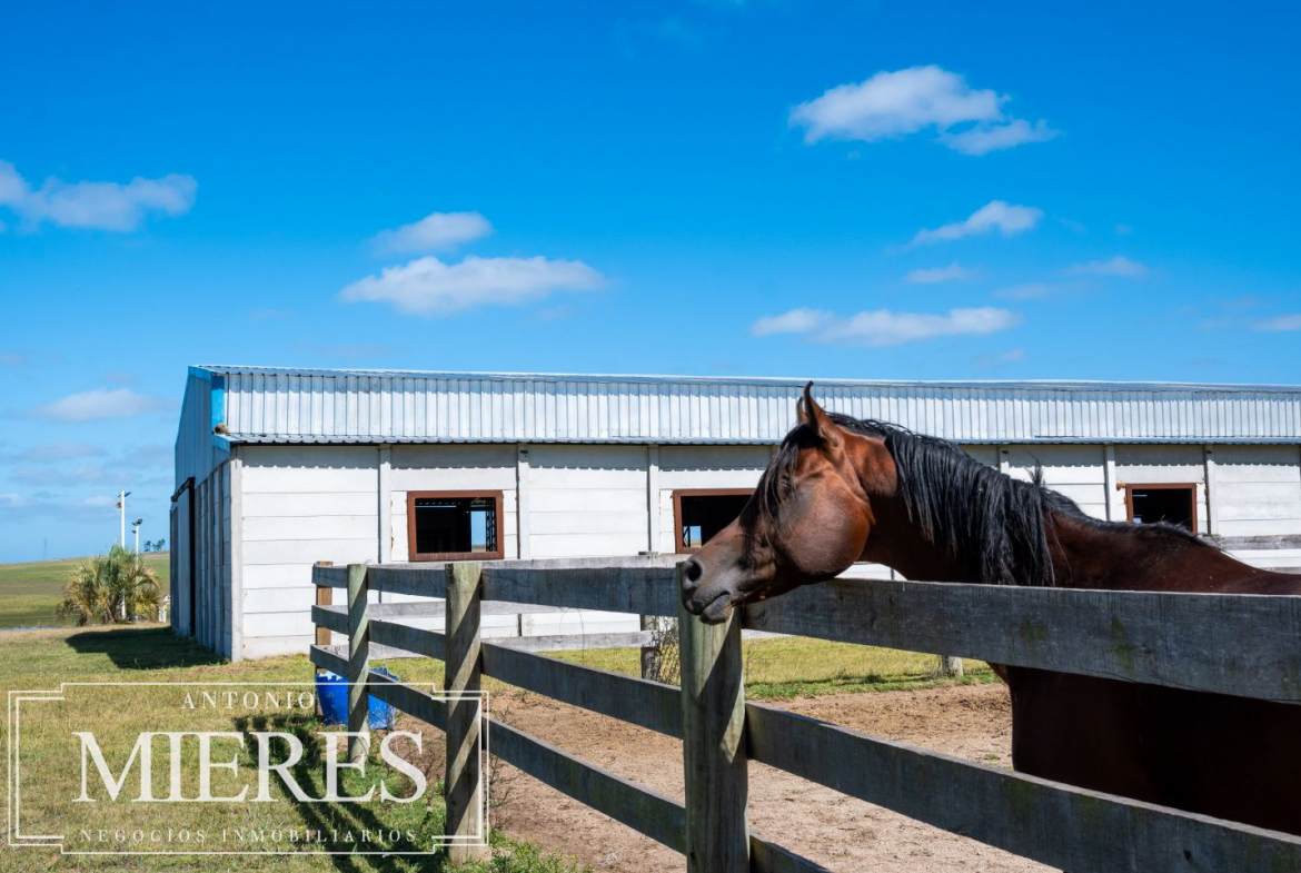 En cuanto a infraestructura productiva, se destacan caballerizas cerradas con laboratorio y un imponente galpón de 980 m², lo que posiciona a esta chacra como una opción única para proyectos ecuestres, emprendimientos productivos o desarrollos de alto nivel.