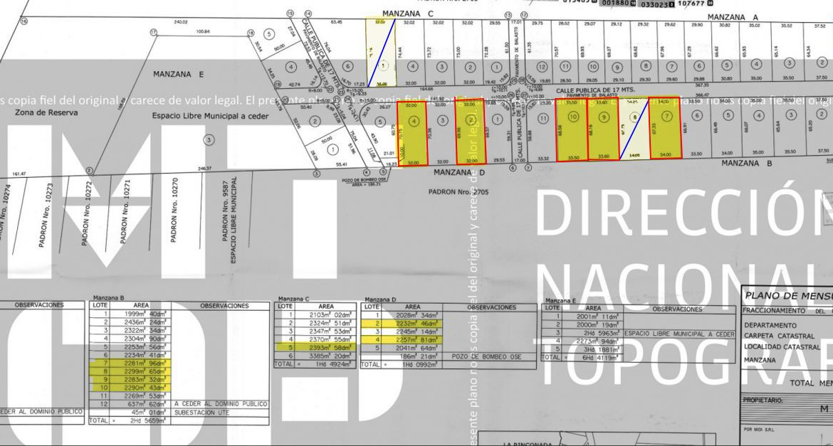 se trata de lotes de entre 2200 y 2300 m2 cada uno.