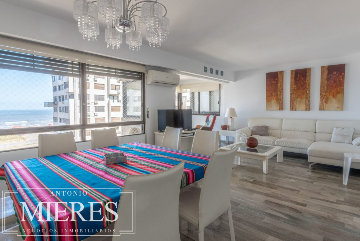 Excelente unidad pasante, totalmente reciclada, que se destaca por su luminosidad y funcional distribución. Los dormitorios cuentan con vista hacia Playa Mansa, mientras que el living comedor ofrece una agradable vista hacia Playa Brava, logrando una ventilación cruzada ideal y sol durante todo el día.