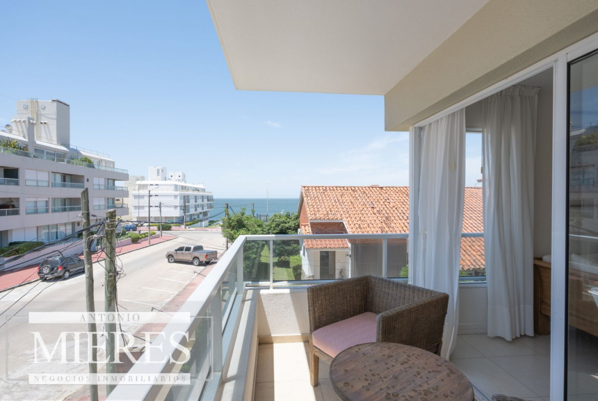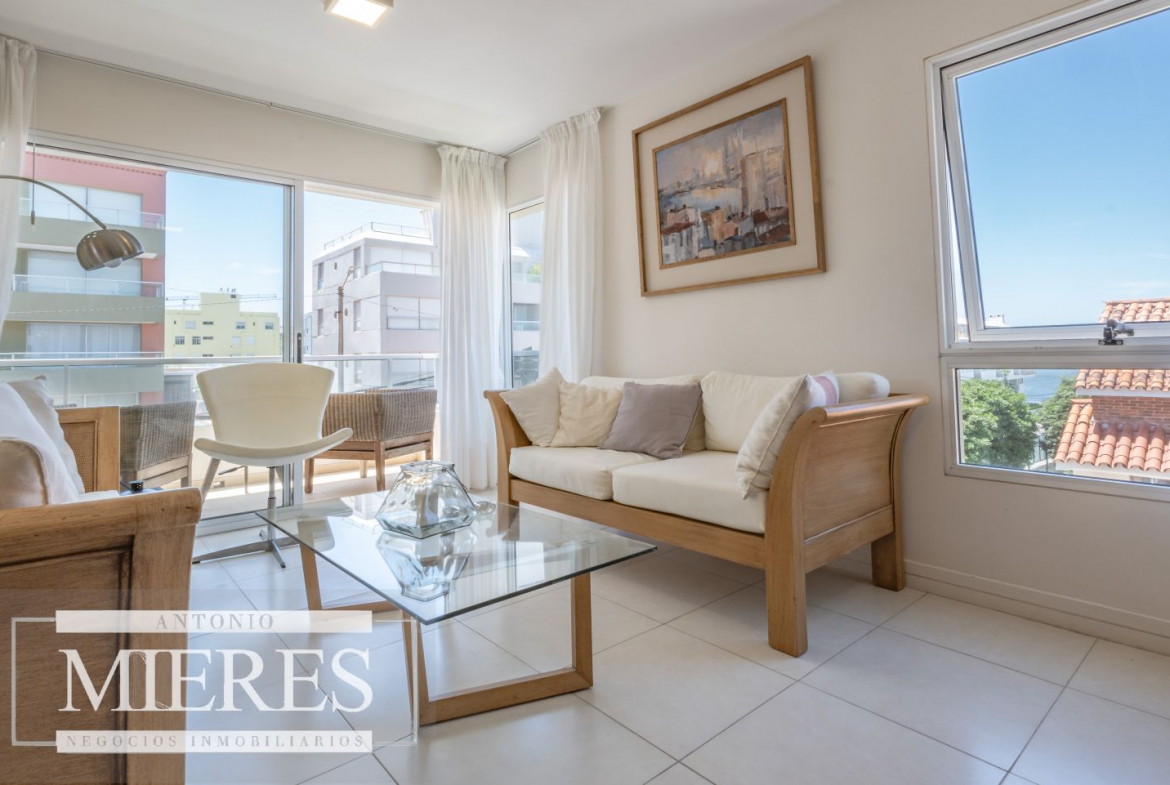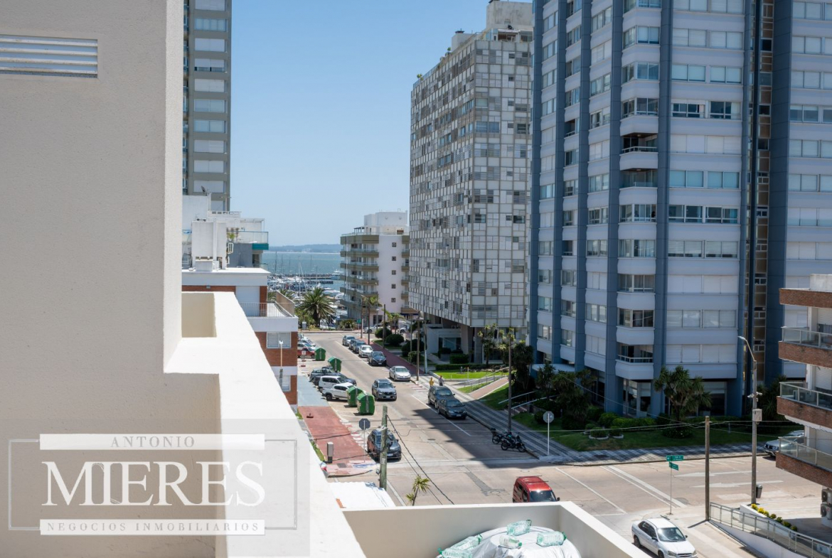 Acogedor apartamento ubicado a metros de Playa de los Ingleses y solo un par de cuadras del Puerto, en el corazon de la Península. Ubicado al frente, unidad esquinera con excelente orientación ideal para vivir todo el año. Balcón terraza con vista al mar. Living comedor, cocina definida y lavadero.