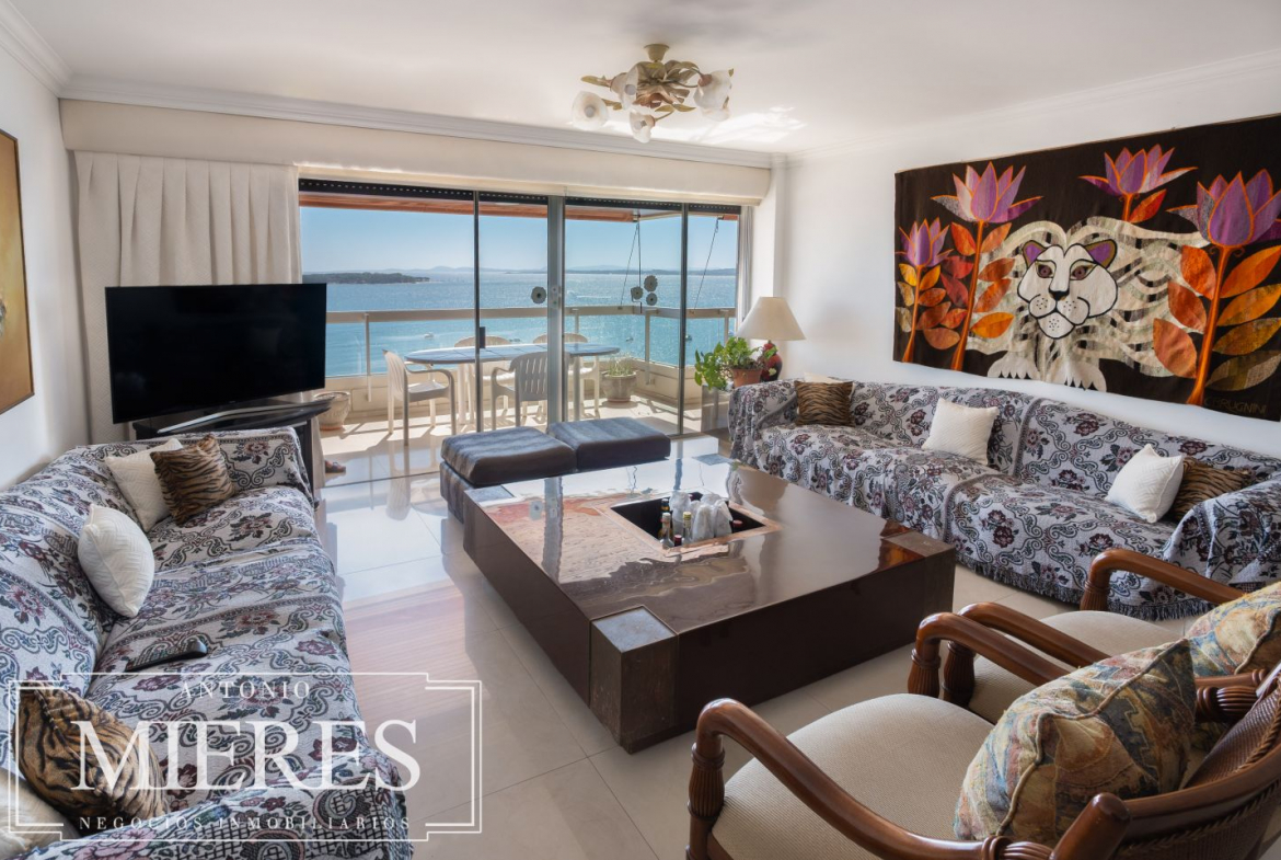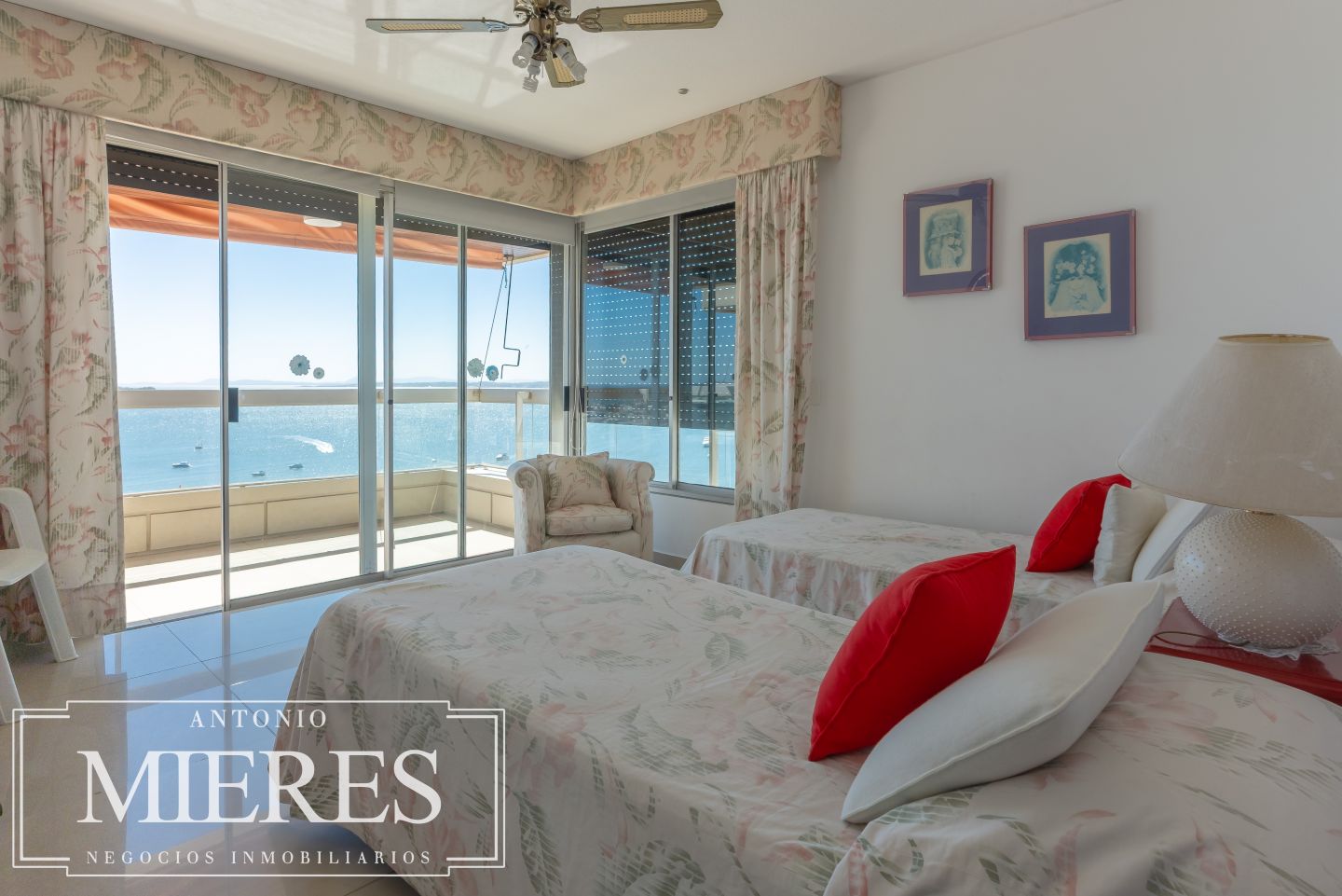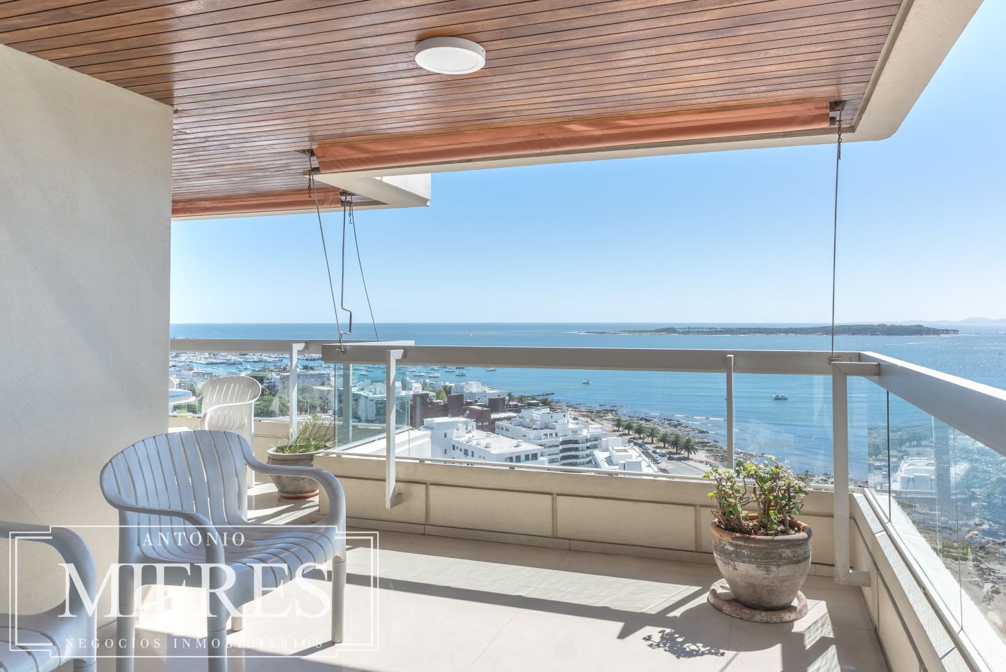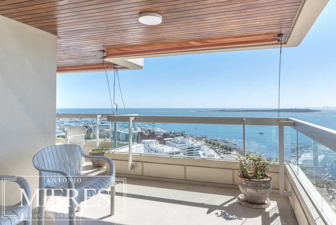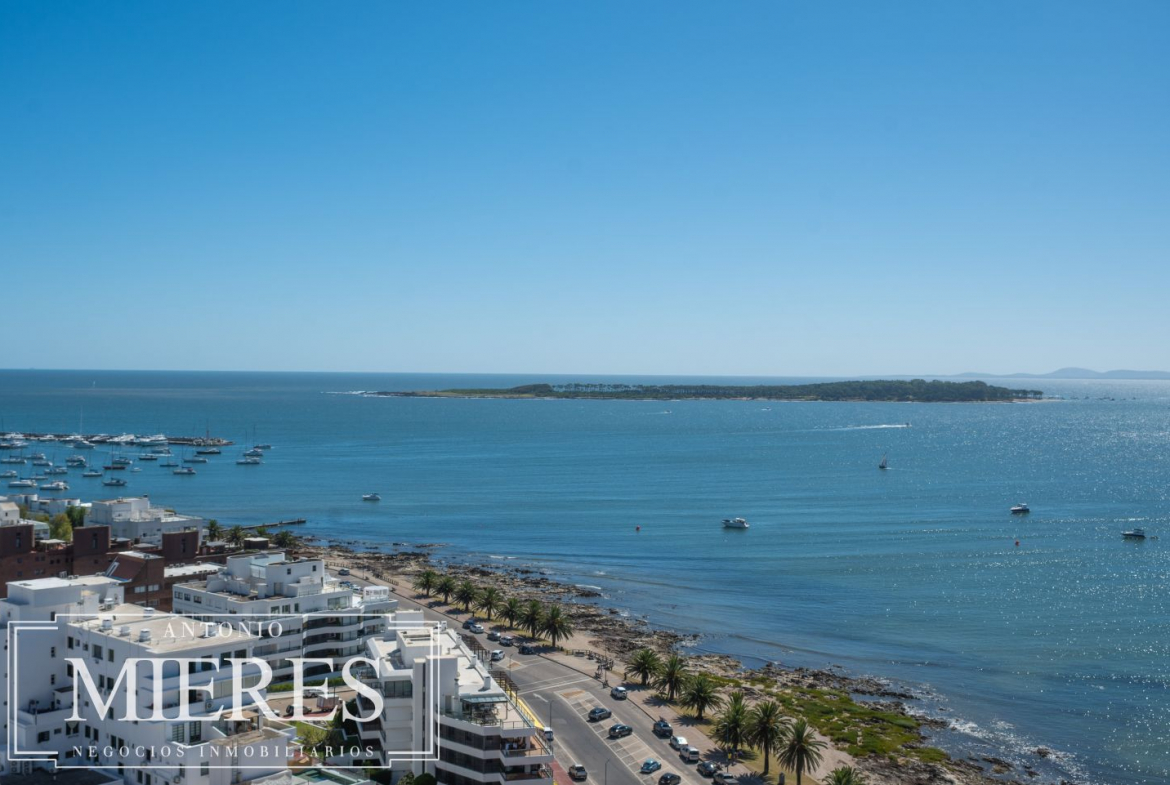 Encuentra en esta propiedad, la mejor vista a la bahia de Punta del Este. Playa mansa en su magnitud, atardeceres sobre Punta Ballena y la belleza del Puerto o el faro.  Un apartamento en edificio emblematico de la zona, con ambientes amplios, luminos y todos con impresionantes vistas. Gran living comedor, terraza abierta con circulacion al dormitorio principal, el cual cuenta con placard amplio y baño en suite.  Otros dos dormitorios con amplios ventanales, uno de ellos con terraza privada, comparten el segundo baño completo. La cocina definida, cuenta con area de comedor diario, amplia mesada, espacio de guardado y area de lavadero anexa. Esta propiedad cuenta ademas de baño social, con dormitorio y baño de servicio integrados, con doble circulacion a cocina y salon.