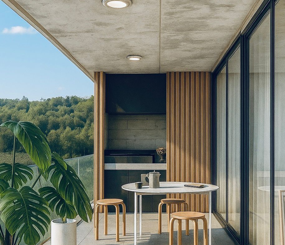 Todos los apartamentos estarán equipados con aire acondicionado, losa radiante, aberturas de aluminio con doble vidrio y parrillero propio, logrando confort y practicidad durante todo el año.