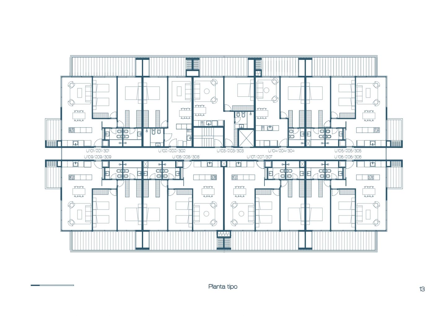 El edificio contará con 39 apartamentos de 1, 2 y 3 dormitorios, con superficies que van desde 60 m² hasta 250 m², adaptándose a distintas necesidades.