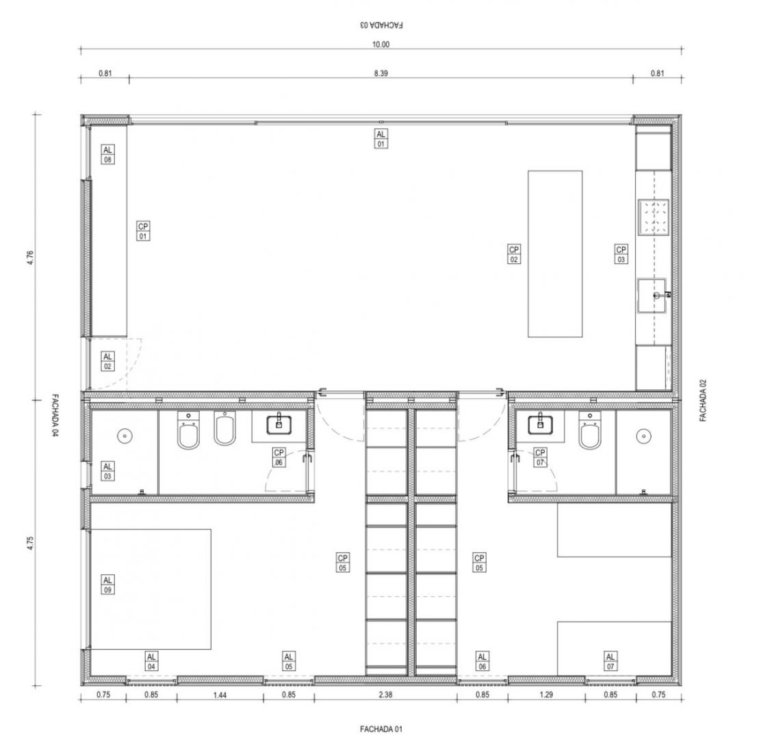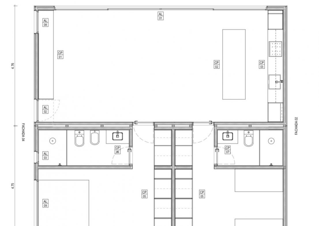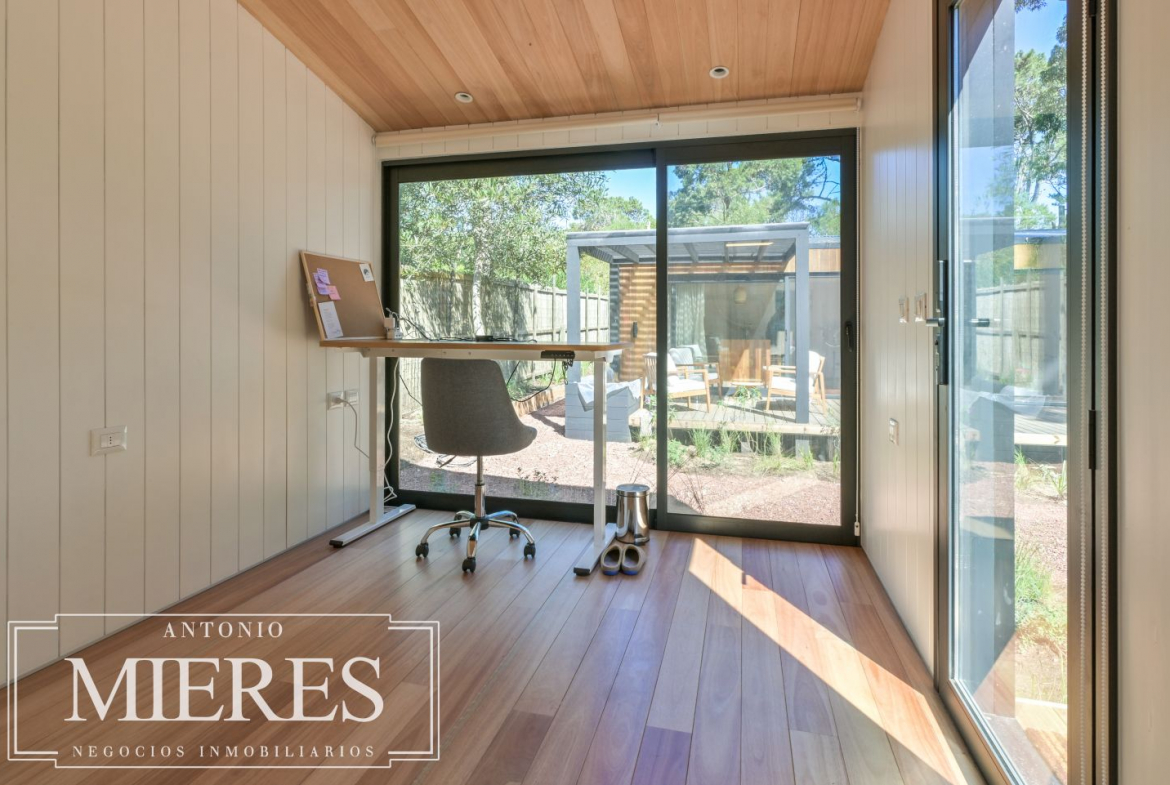 Módulo externo que funciona tanto como habitación de huéspedes o escritorio con baño independiente.