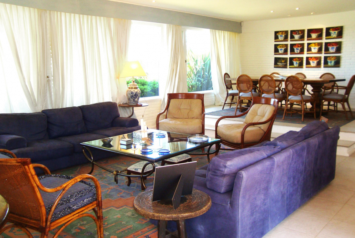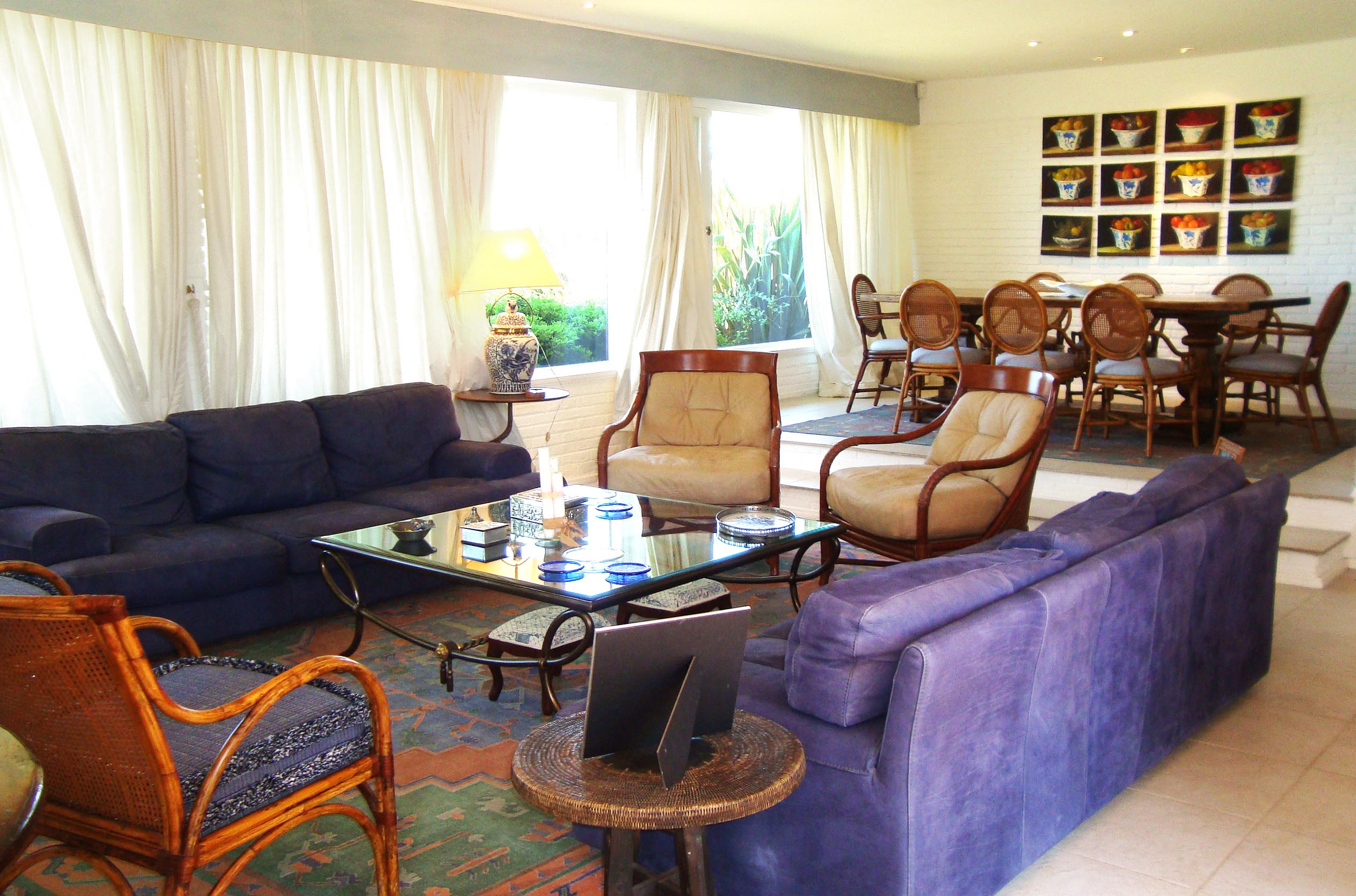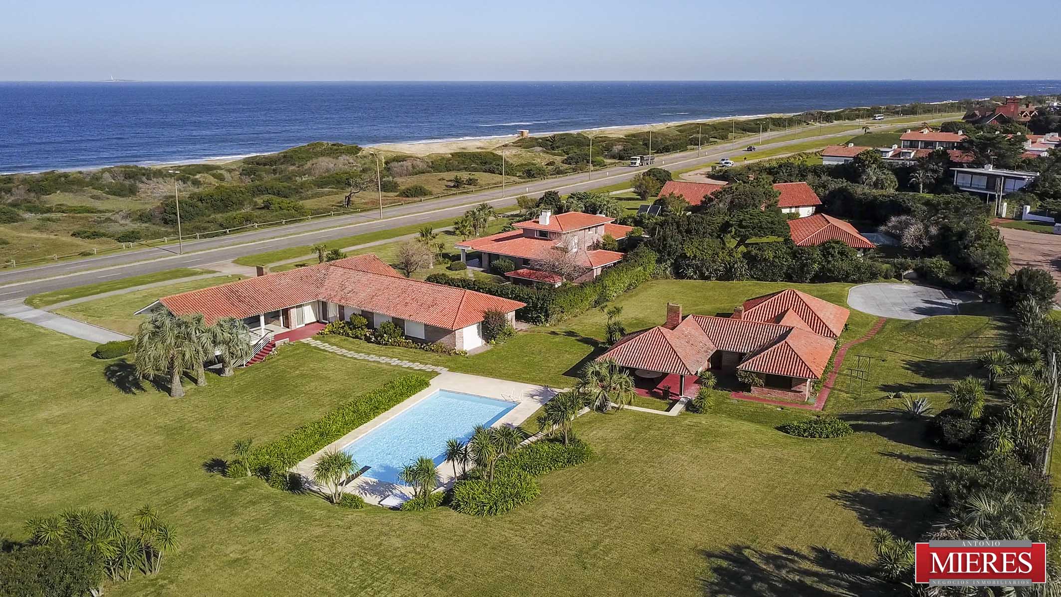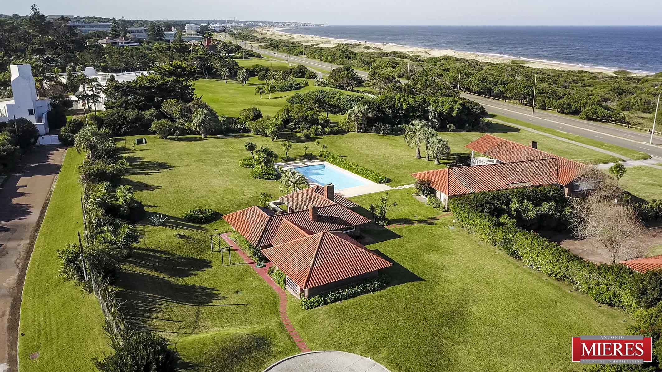 Sobre un lote de 5624m2 con frente a dos calles, se desarrolla una construcción clásica de 534m2 en tres módulos; casa principal, casa de huéspedes y barbacoa, todos con hermosas vistas al mar y al jardín. Gran piscina y solarium.  La casa principal cuenta con living comedor y terraza, escritorio, amplia cocina definida, dormitorio principal con baño en suite y vestidor, segundo dormitorio con baño en suite y dos habitaciones de servicio integradas. La casa de huéspedes cuenta con un área de estar y 2 dormitorios con 1 baño. Ademas la barbacoa tiene un dormitorio de huéspedes adicional. Garaje para 3 autos en subsuelo.