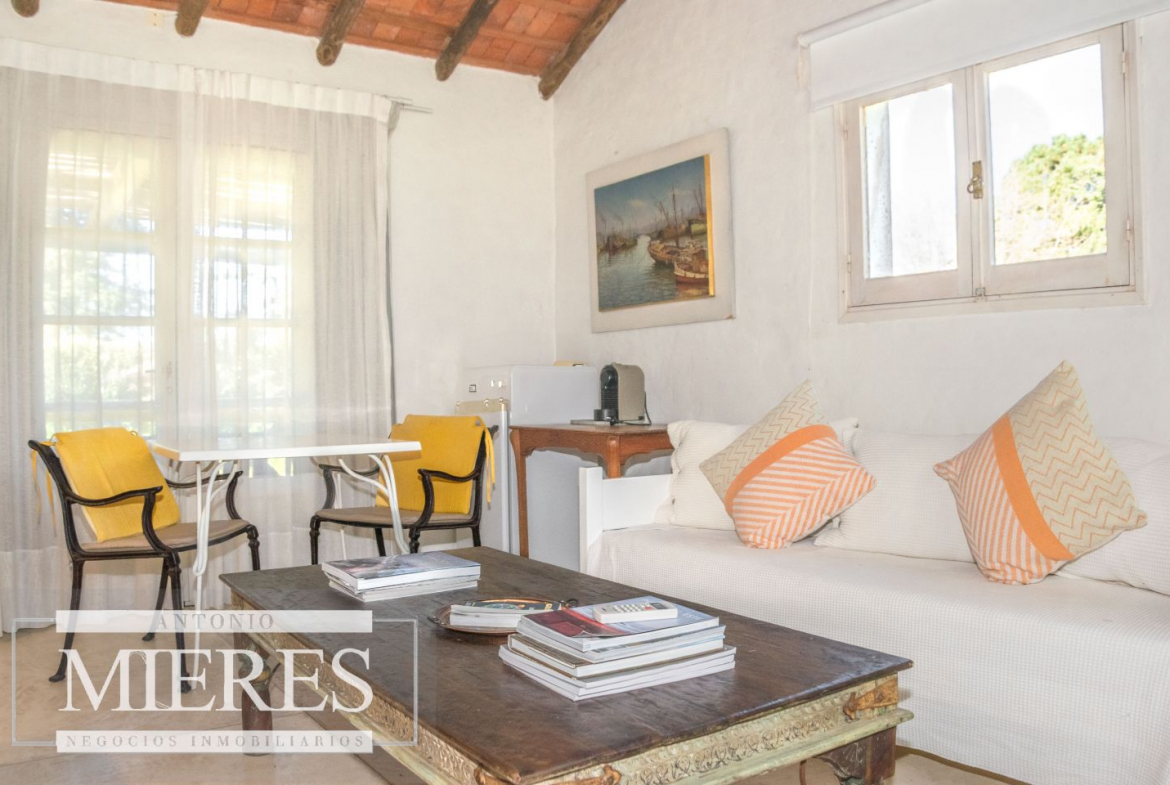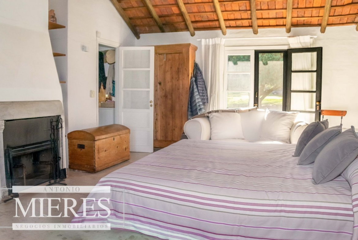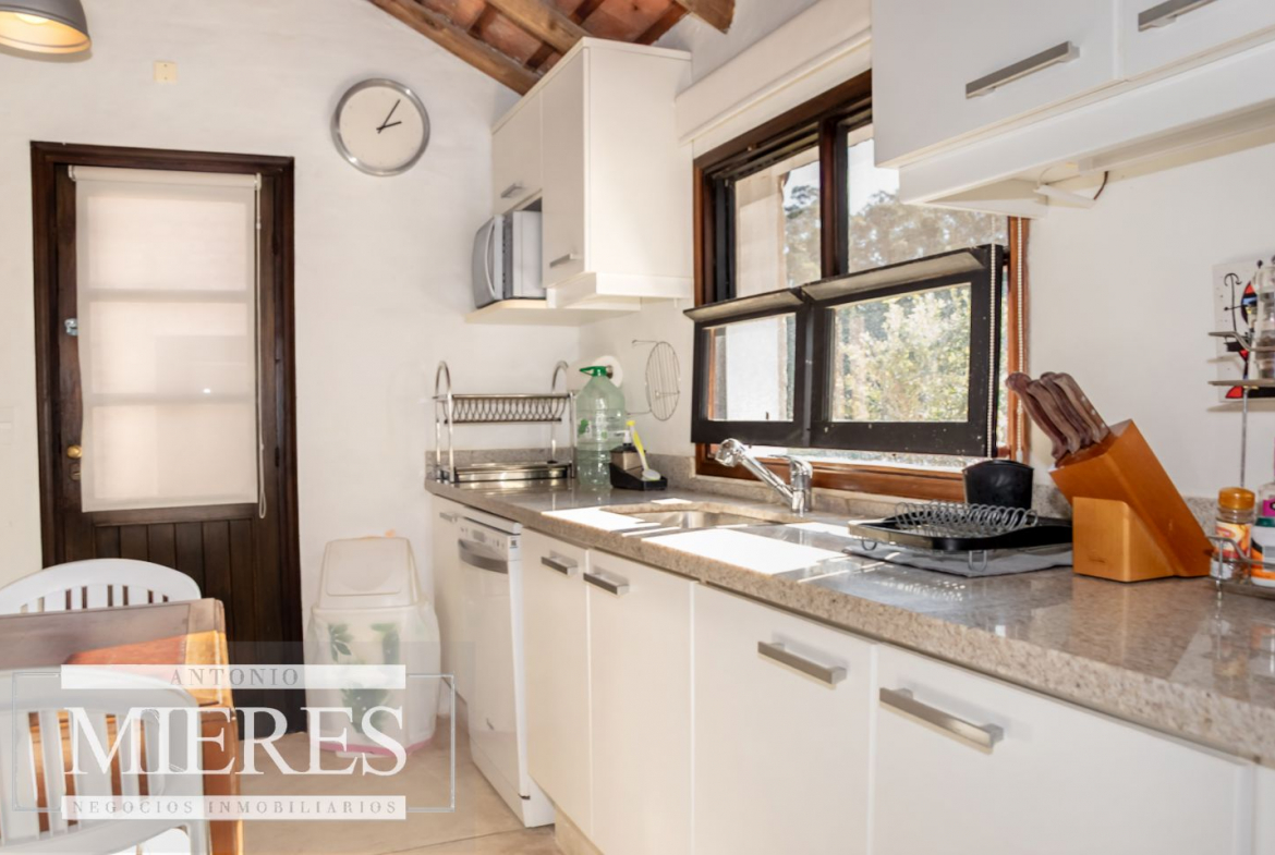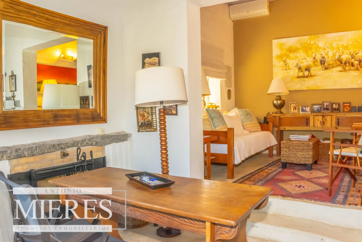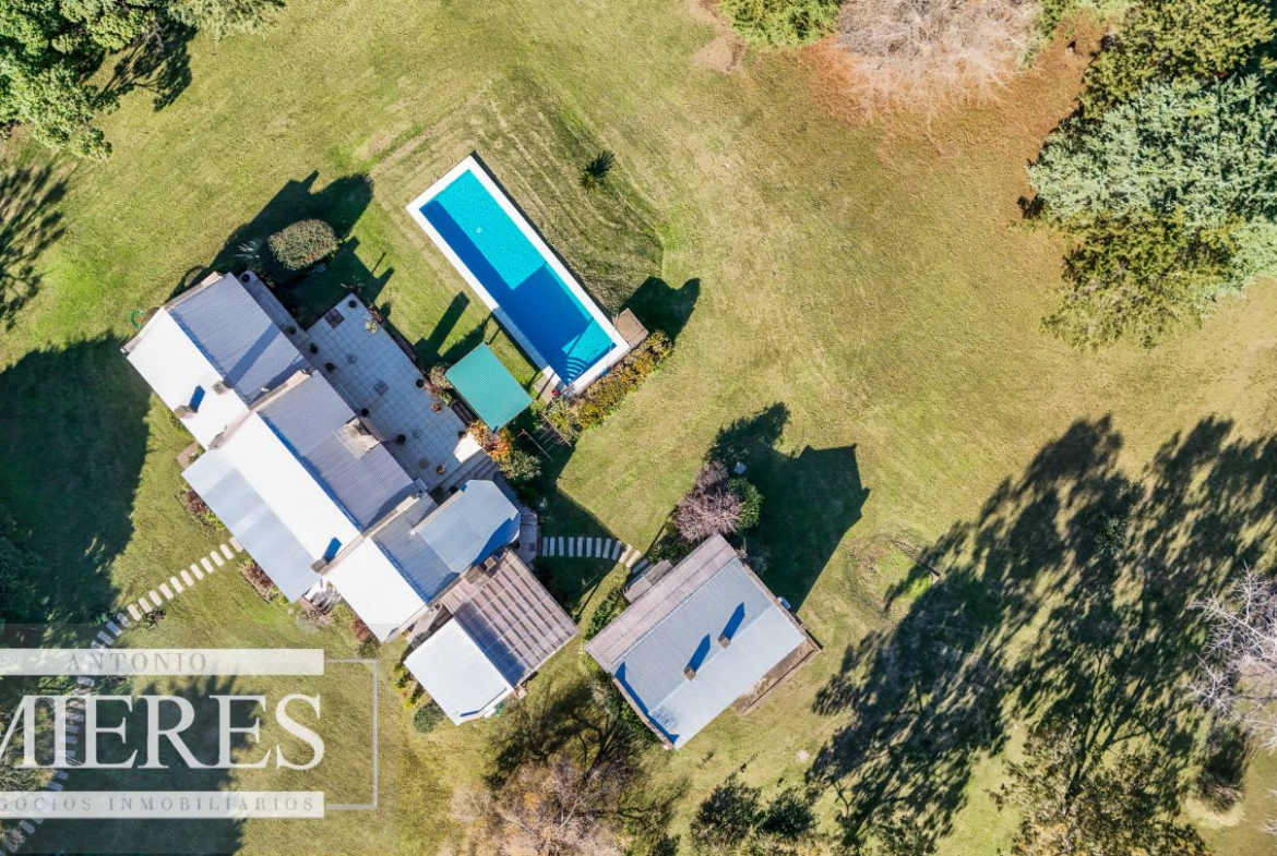 La casa principal cuenta con 2 amplias suites, living con hogar y salida directa a la piscina, además de cocina definida con acceso al parrillero techado.