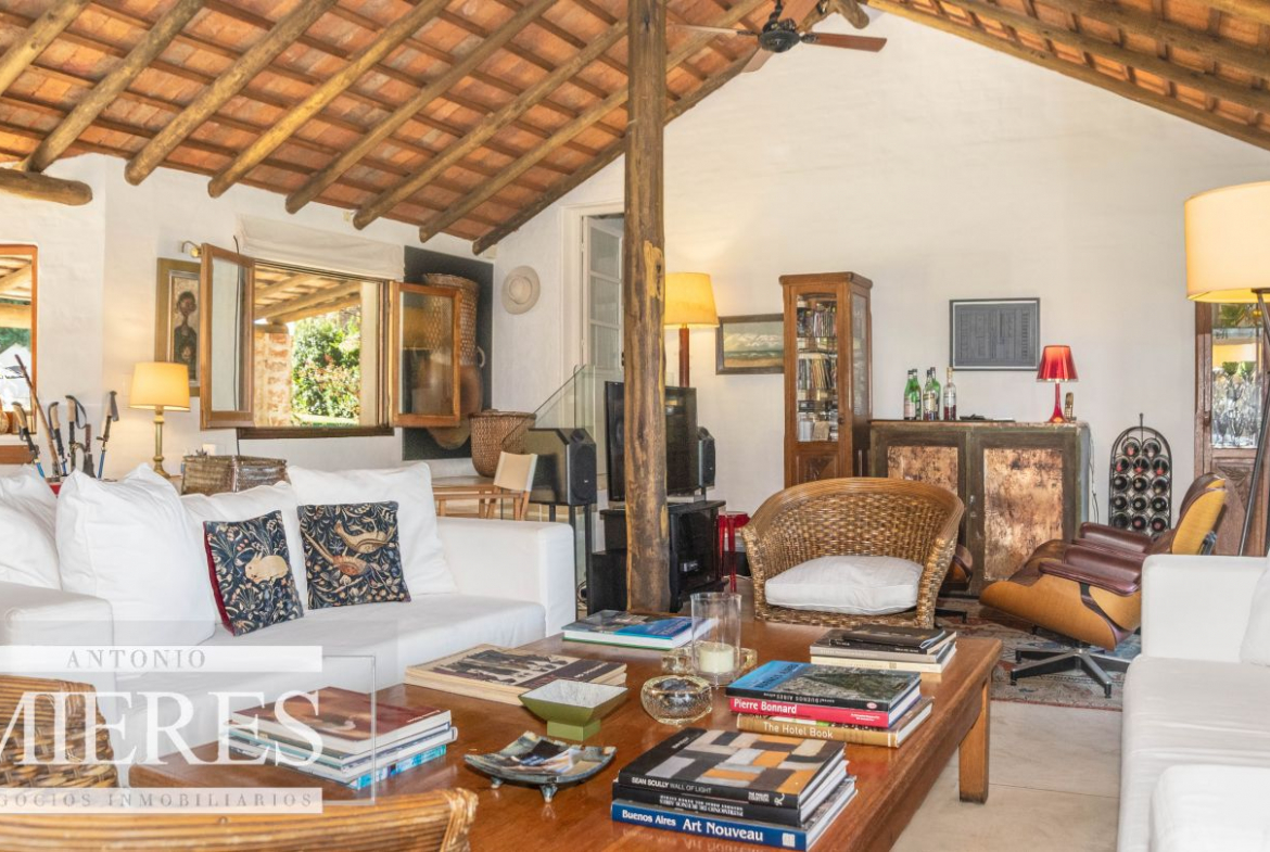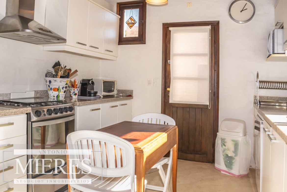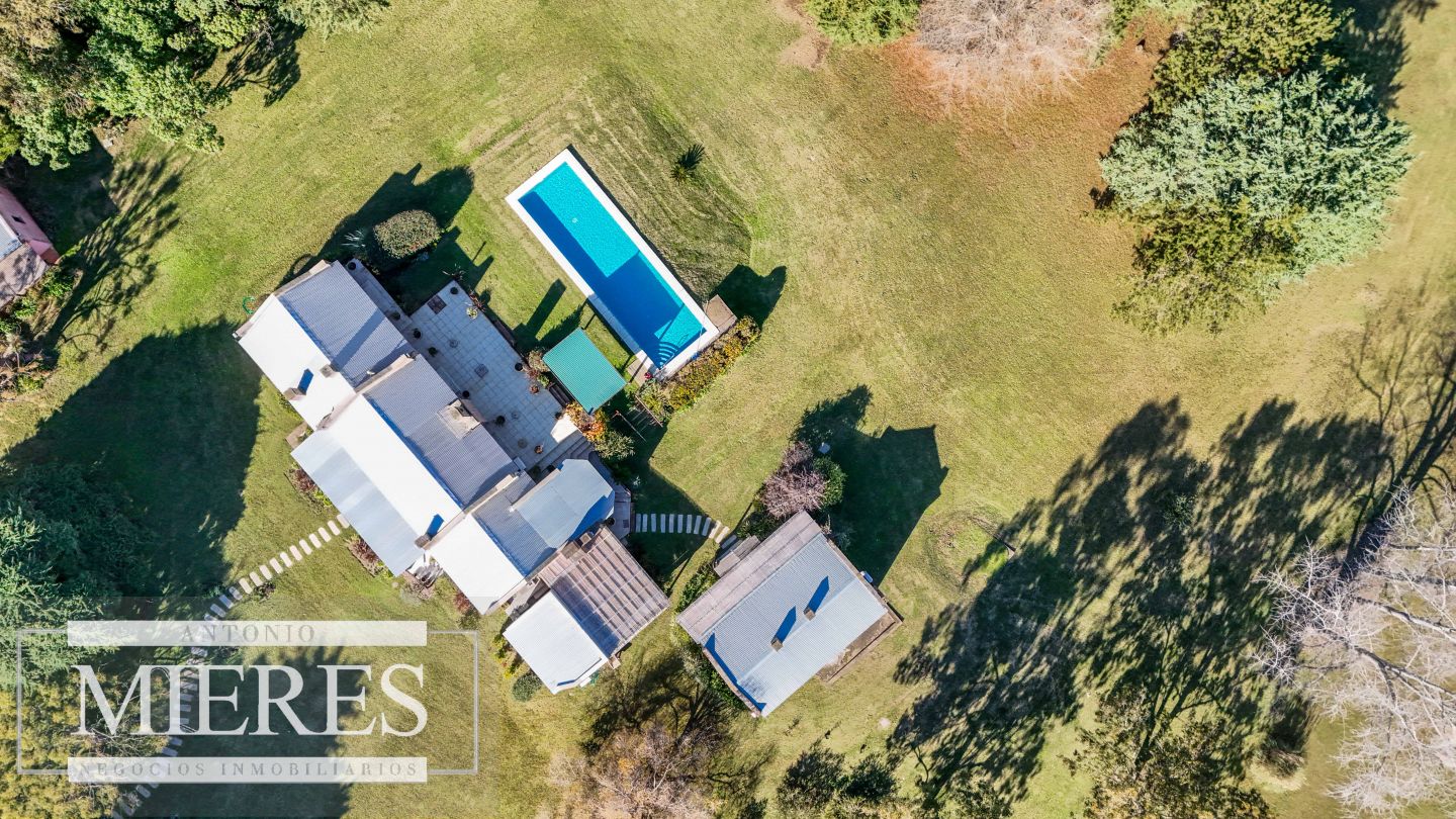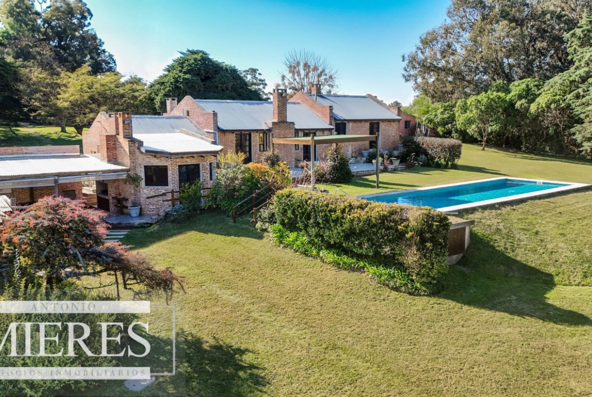 La casa principal cuenta con 2 amplias suites, living con hogar y salida directa a la piscina, además de cocina definida con acceso al parrillero techado.