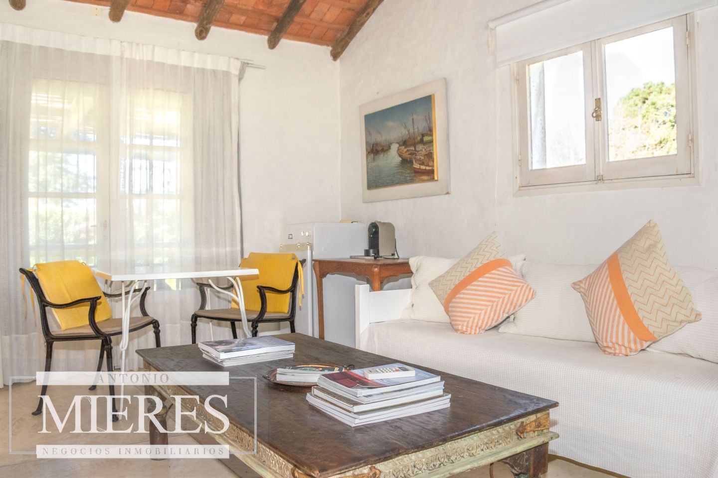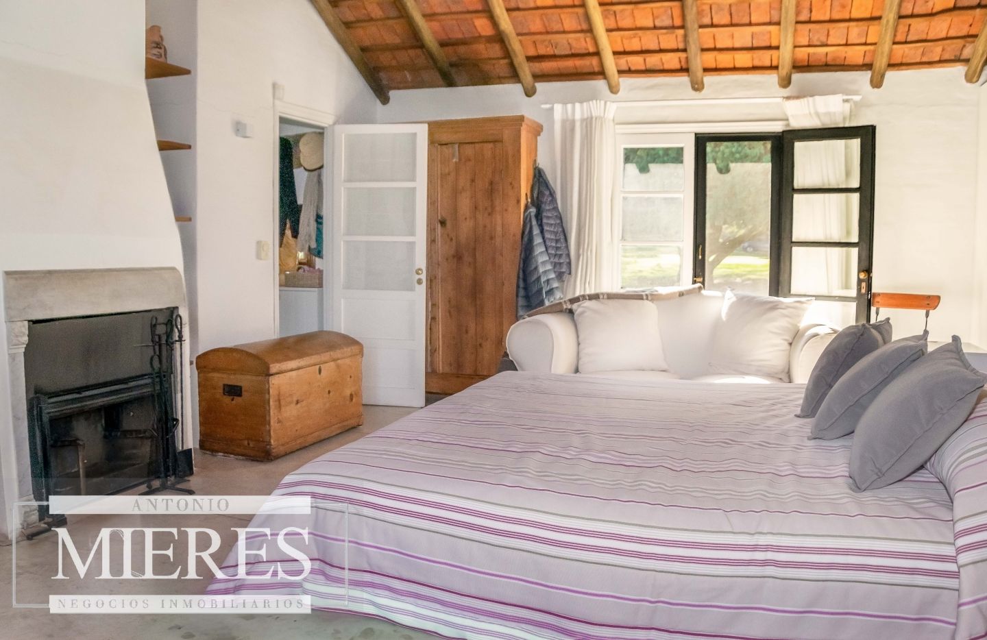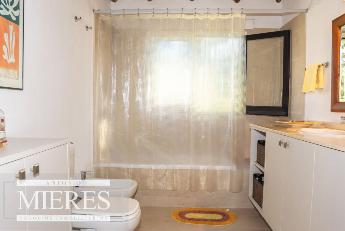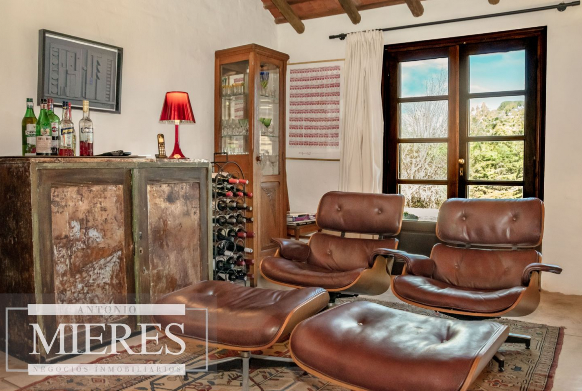 La casa principal cuenta con 2 amplias suites, living con hogar y salida directa a la piscina, además de cocina definida con acceso al parrillero techado.