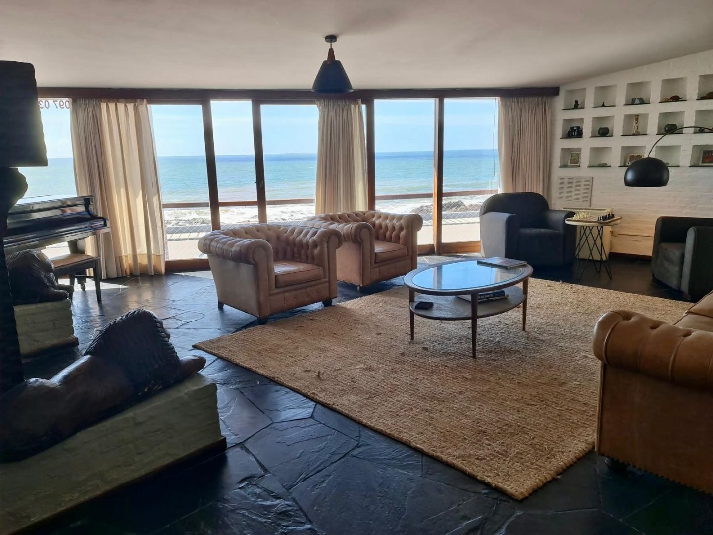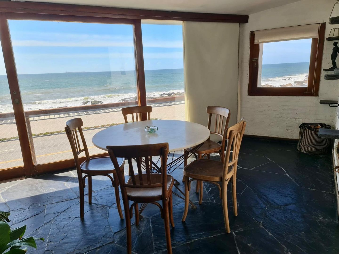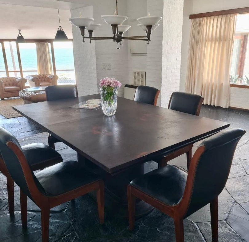 Gran cocina comedor que se suma a las areas sociales de dimensiones grandes y con vistas al mar. Esta desarrollada en dos plantas, toda de cara al océano! Como sistema de calefacción cuenta con acumuladores de calor (sistema español) y gran estufa a leña.