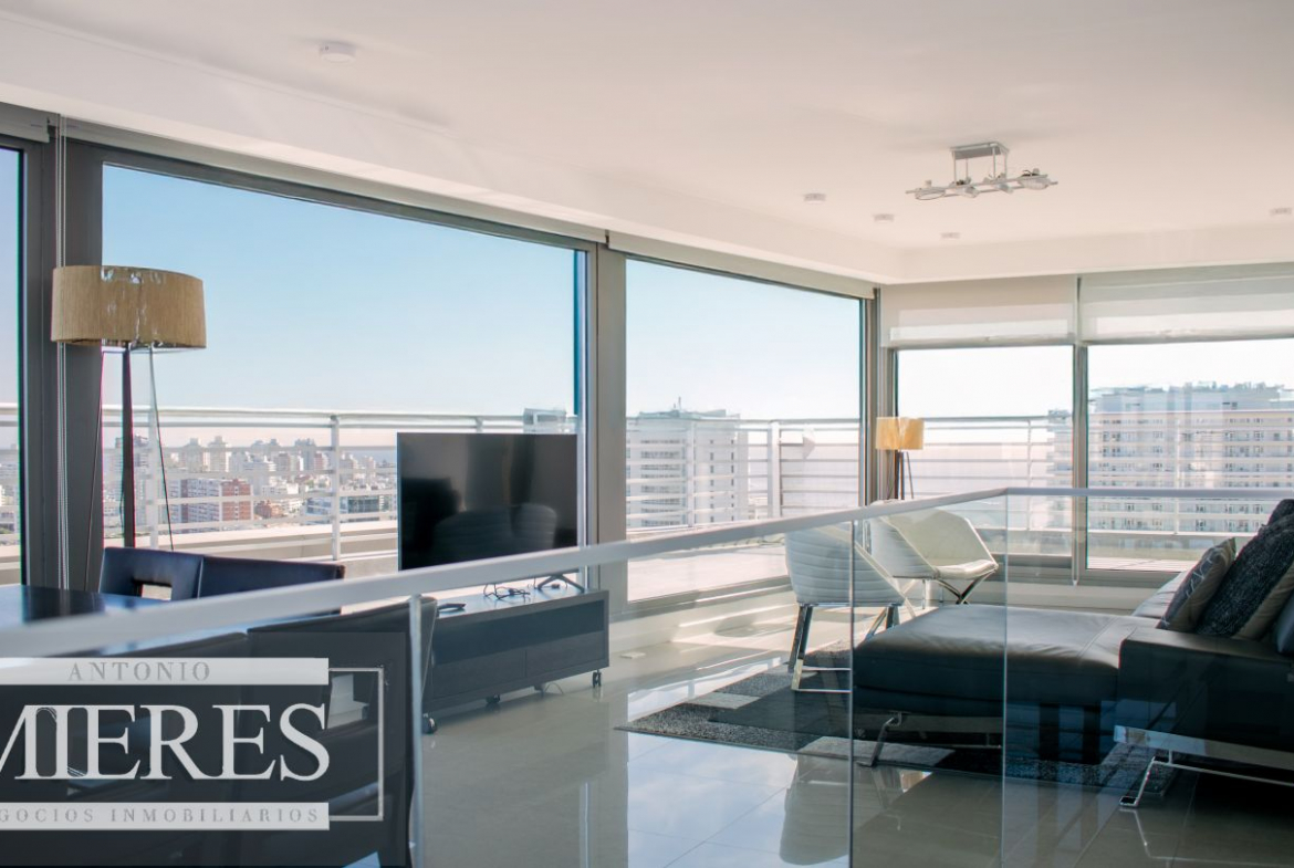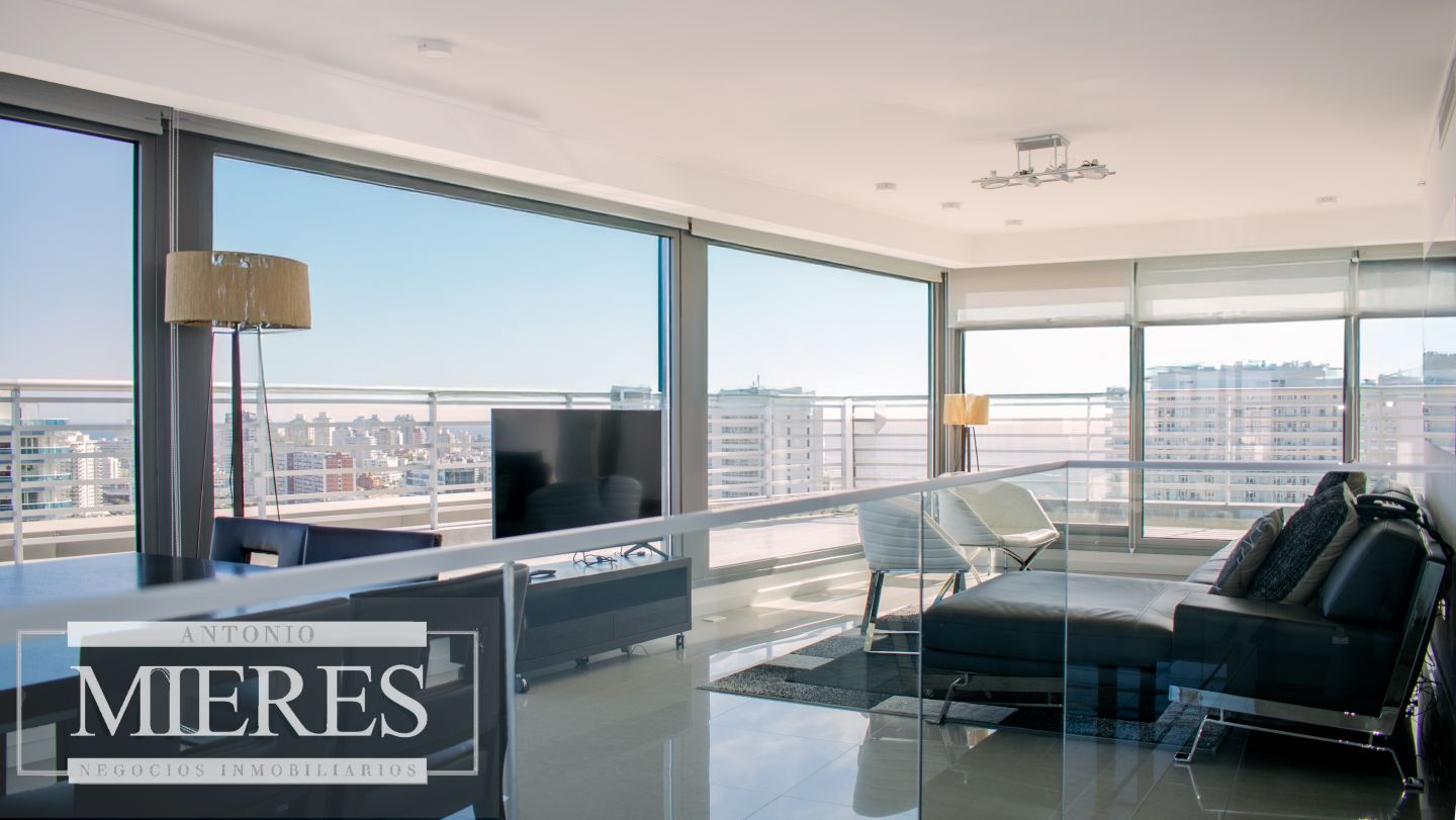 Descubra este exclusivo penthouse dúplex de 246 m² totales en el Edificio Alexander (Parada 4 de la Mansa). Combina sofisticación con terrazas privadas, vistas panoramicas 180º a todo Punta del Este, con un amplio y luminoso living comedor ubicado en el ultimo piso del edificio, donde se destacan los ventanales de piso a techo en toda su extension y acceso directo a la terraza principal envolvente. Cocina definida. Desde esta planta se accede por escalera al area privada en el piso inferior. Con acceso independiente y privado, esta unidad cuenta con 3 habitaciones en suite, la principal con terraza propia, vestidor y jacuzzi, con vista a los mas hermosos atardeceres de playa mansa.